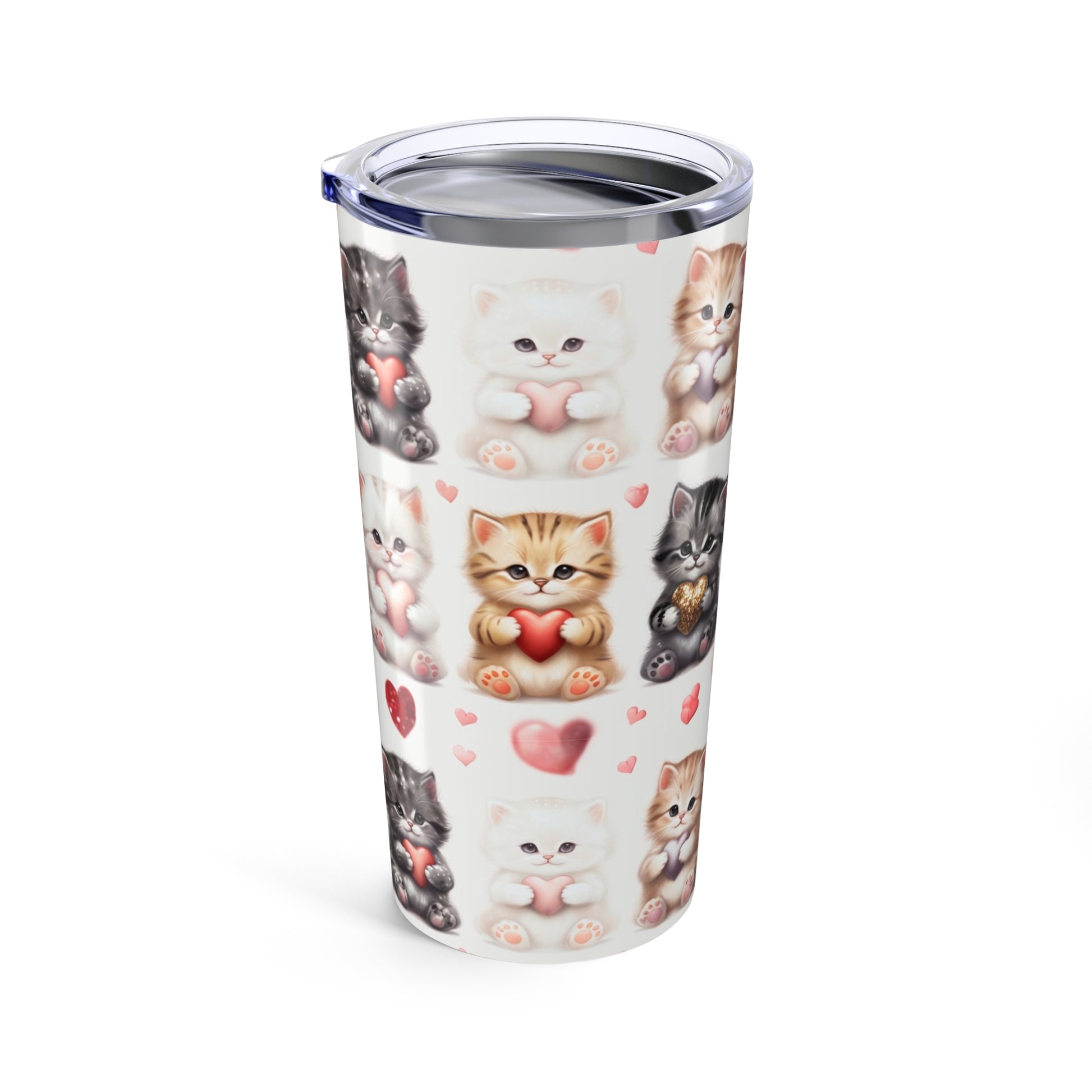 Cat Lover Tumbler, Personalized Sweetheart Kitten 20oz Tumbler, Valentine Gift for Her, Him, Them, Child, Custom Cat Drinkware, Cute Animal