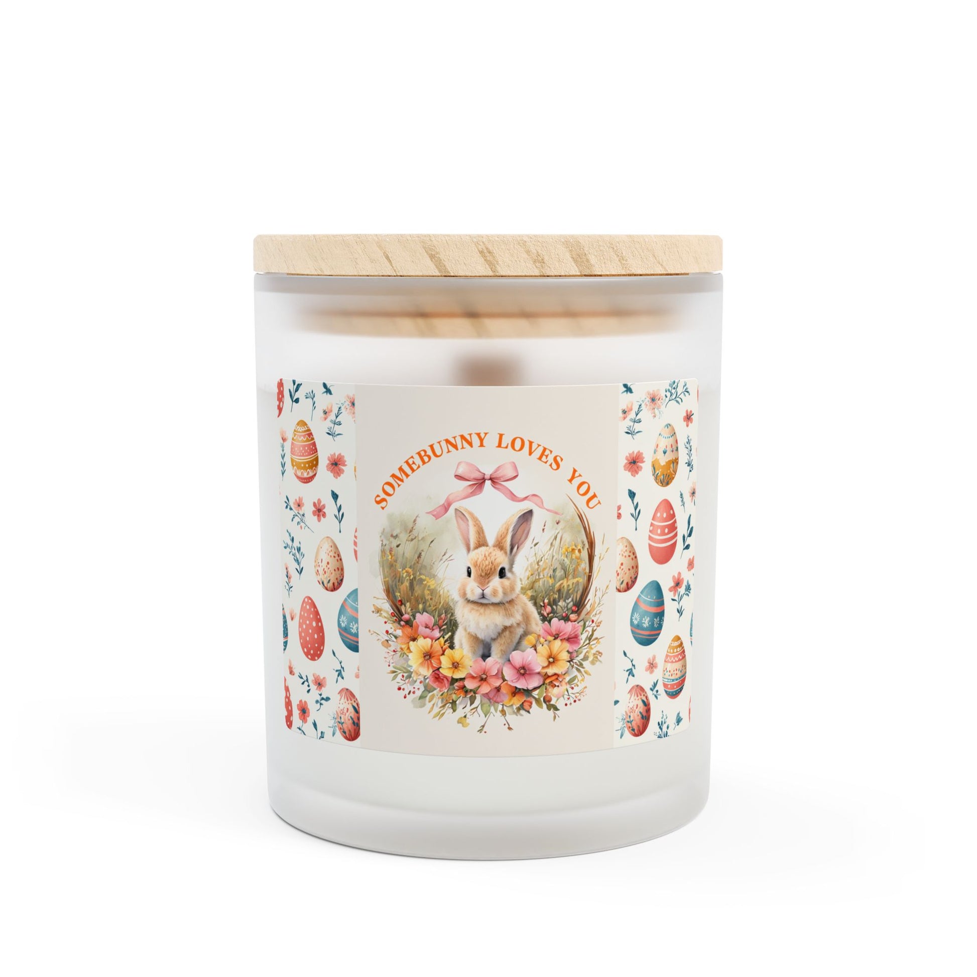 Easter Bunny Decor Candle - 11oz Frosted Glass - 'Somebunny Loves You' (Candle Match Books)