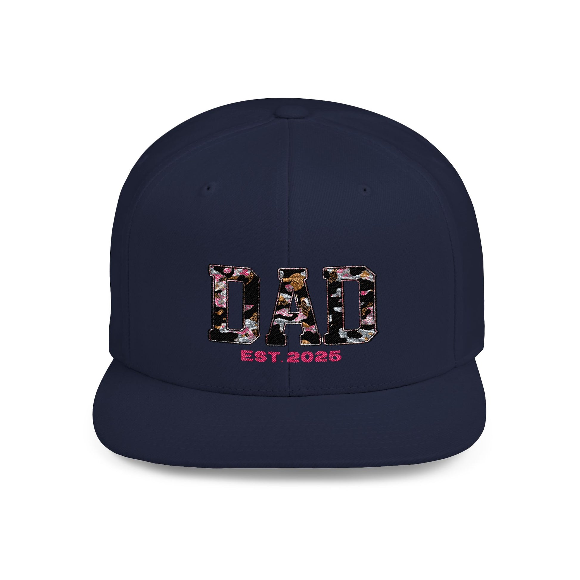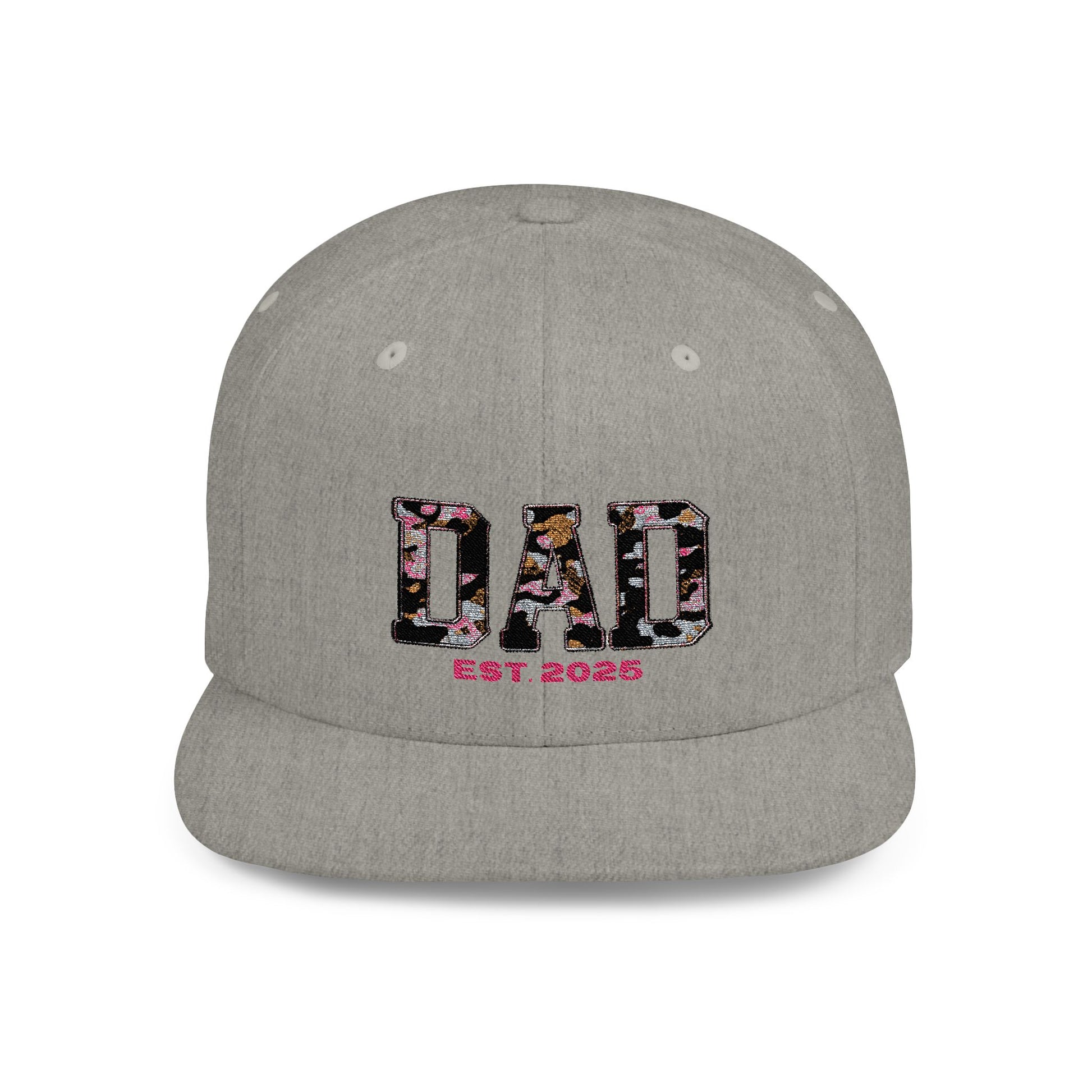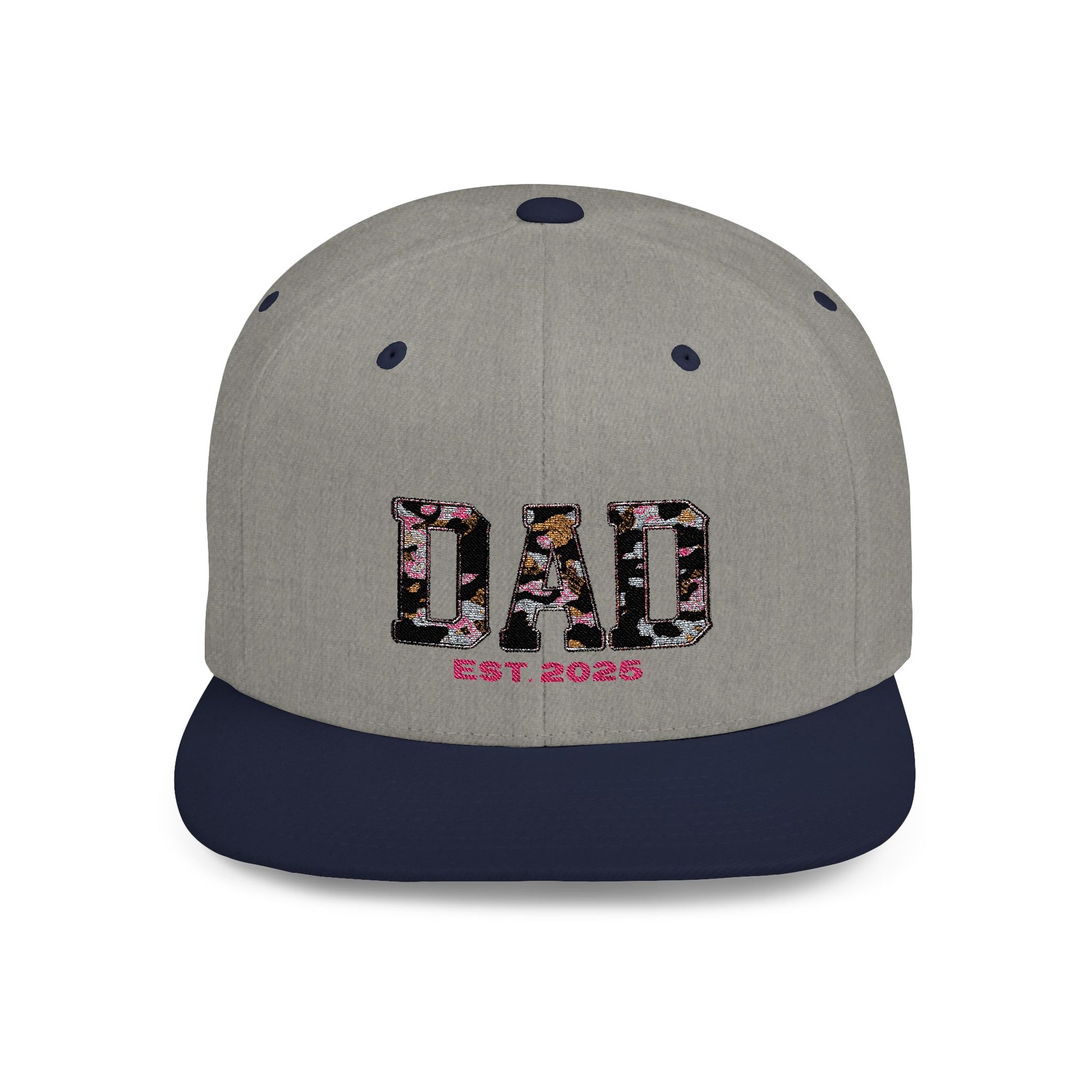 Flat Bill Snapback Cap - Dad Fathers Day Birthday New Baby Personalize Gift, Add Childs Name, Holiday Hat
