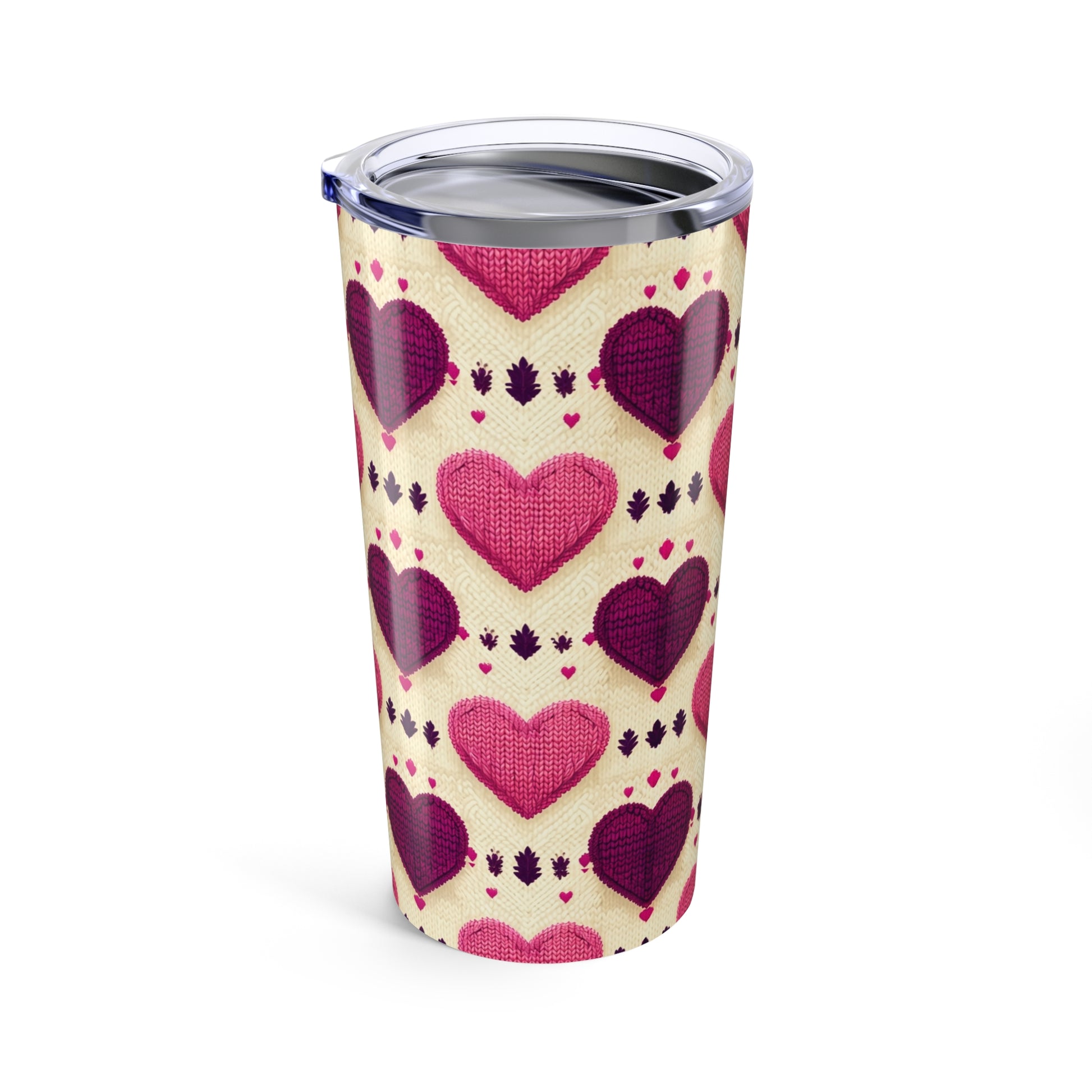 Heart Sweater 20oz Tumbler - Valentine Gift for Her Him Them Child, Holiday Cup, Love Mug, Cute Drinkware, Heart Pattern Travel Cup
