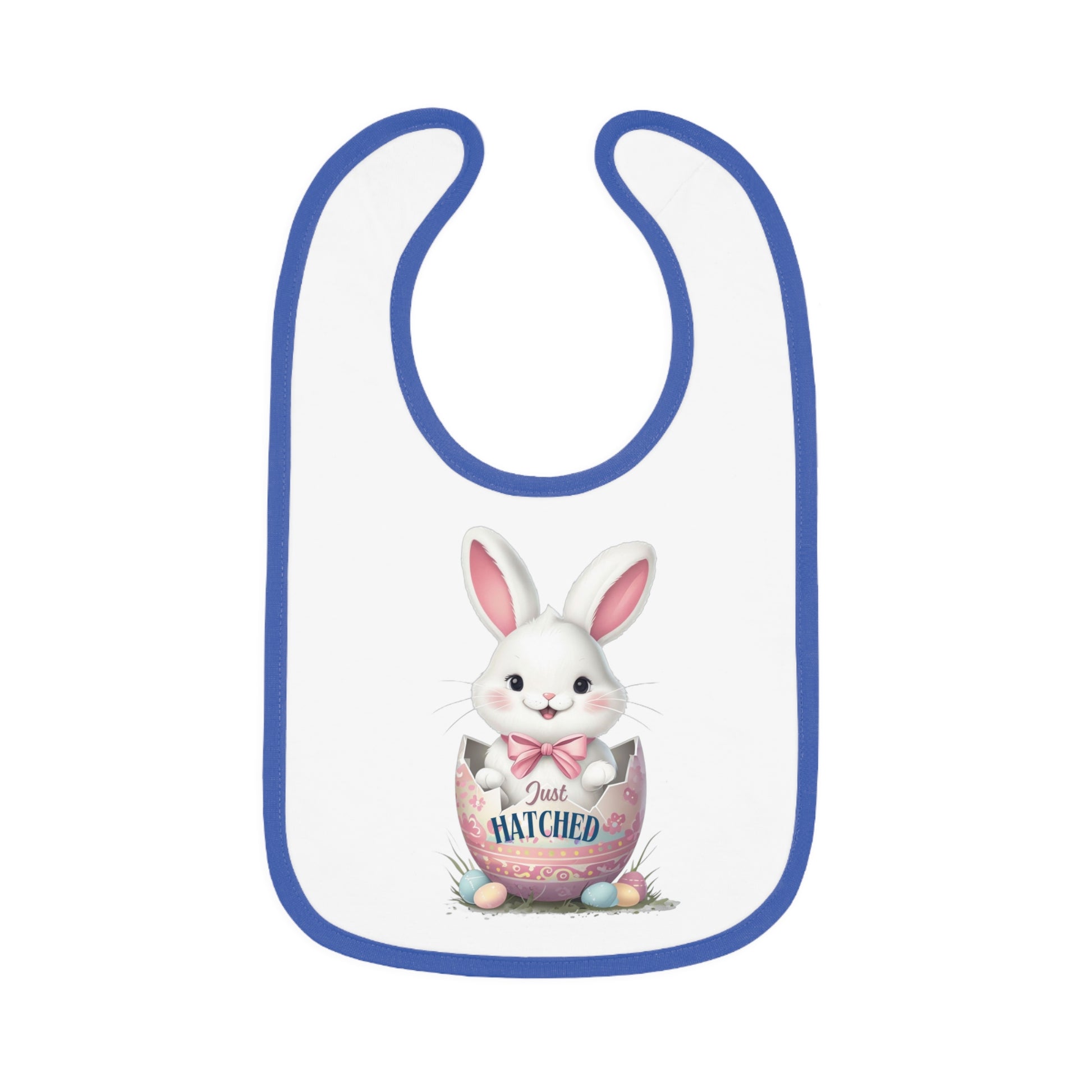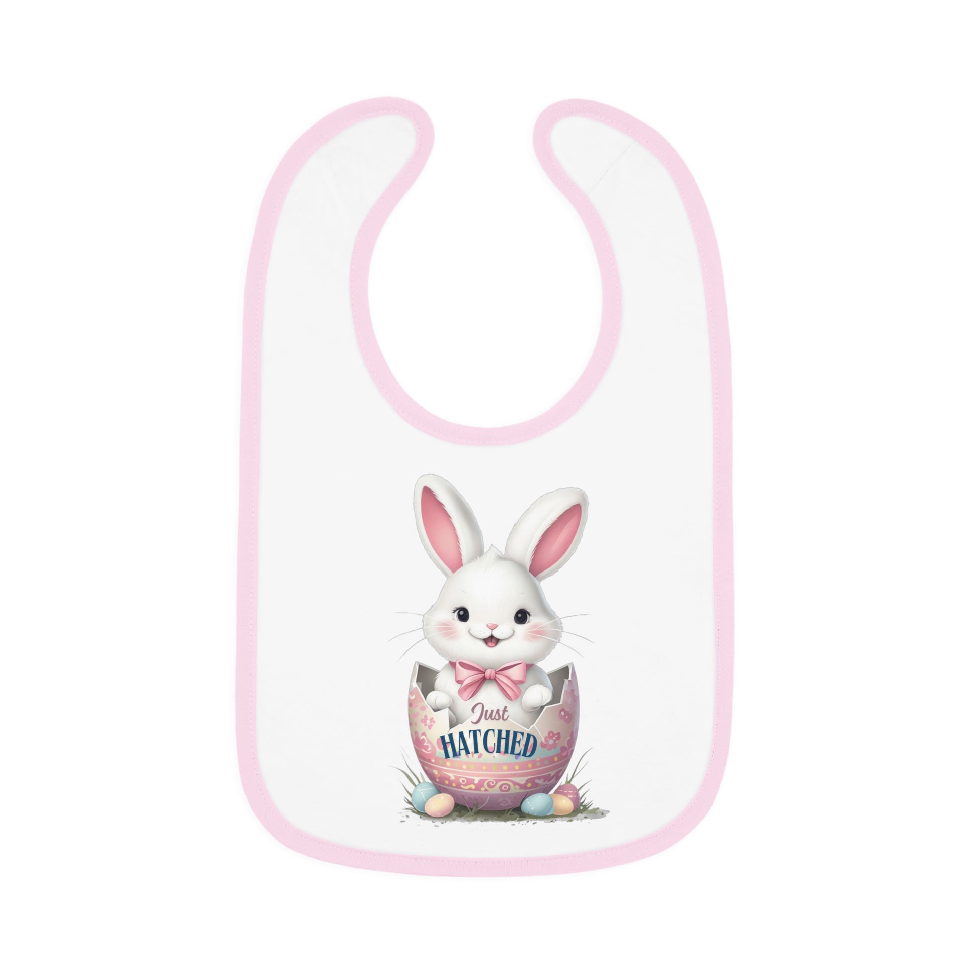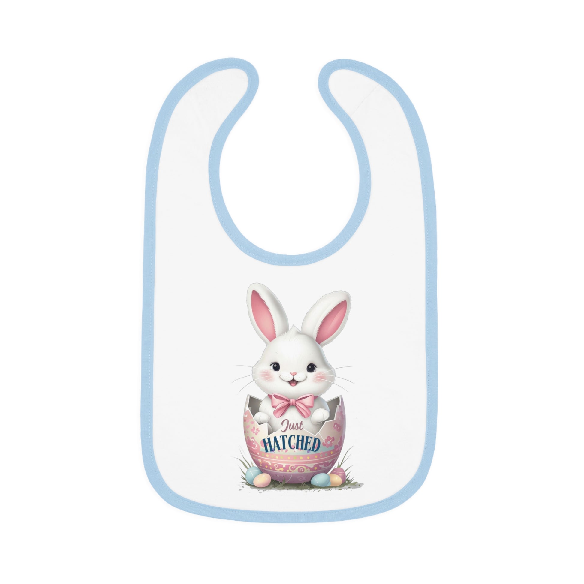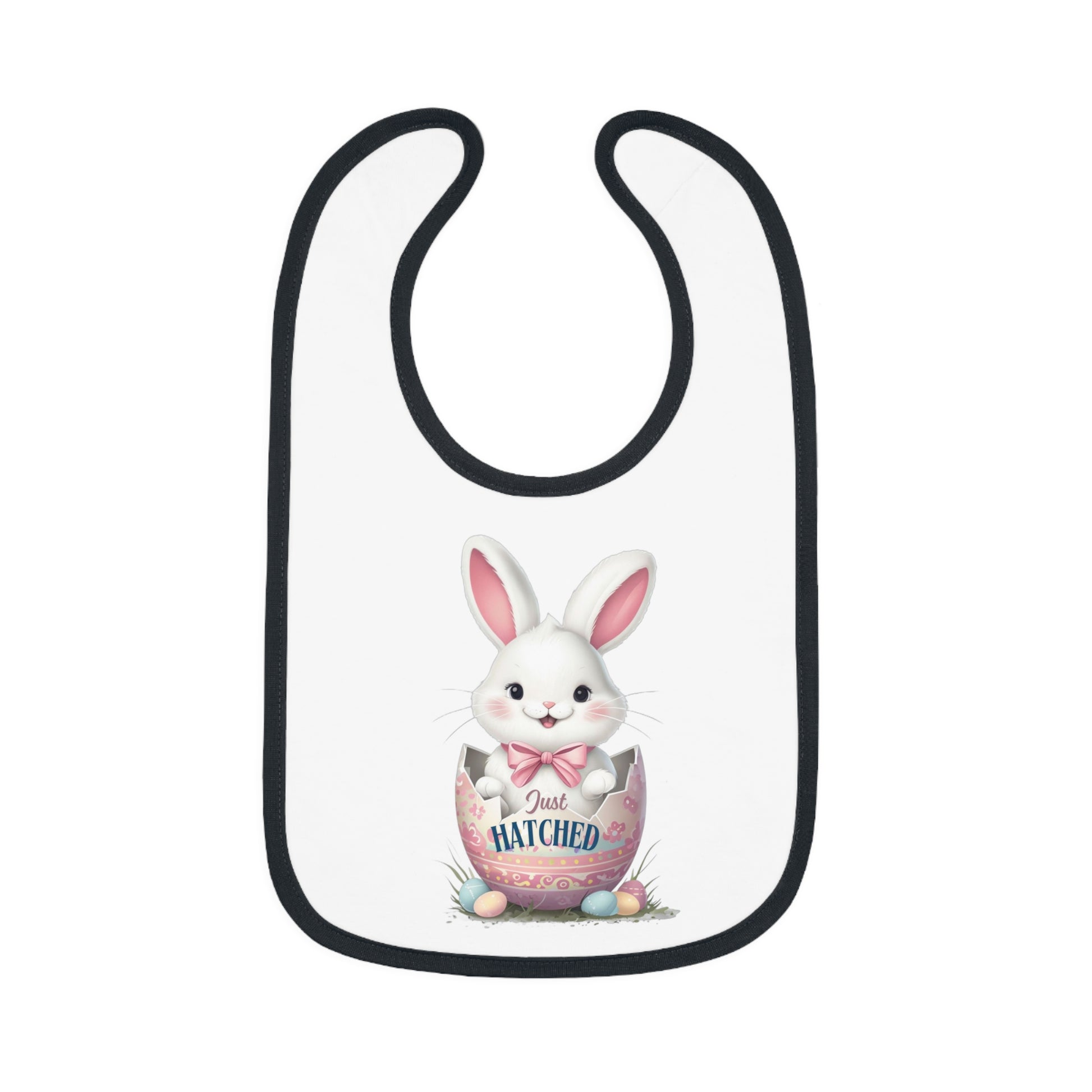 Just Hatched Easter Bunny Bib - Adorable Baby Contrast Trim Jersey Bib for Spring Celebrations