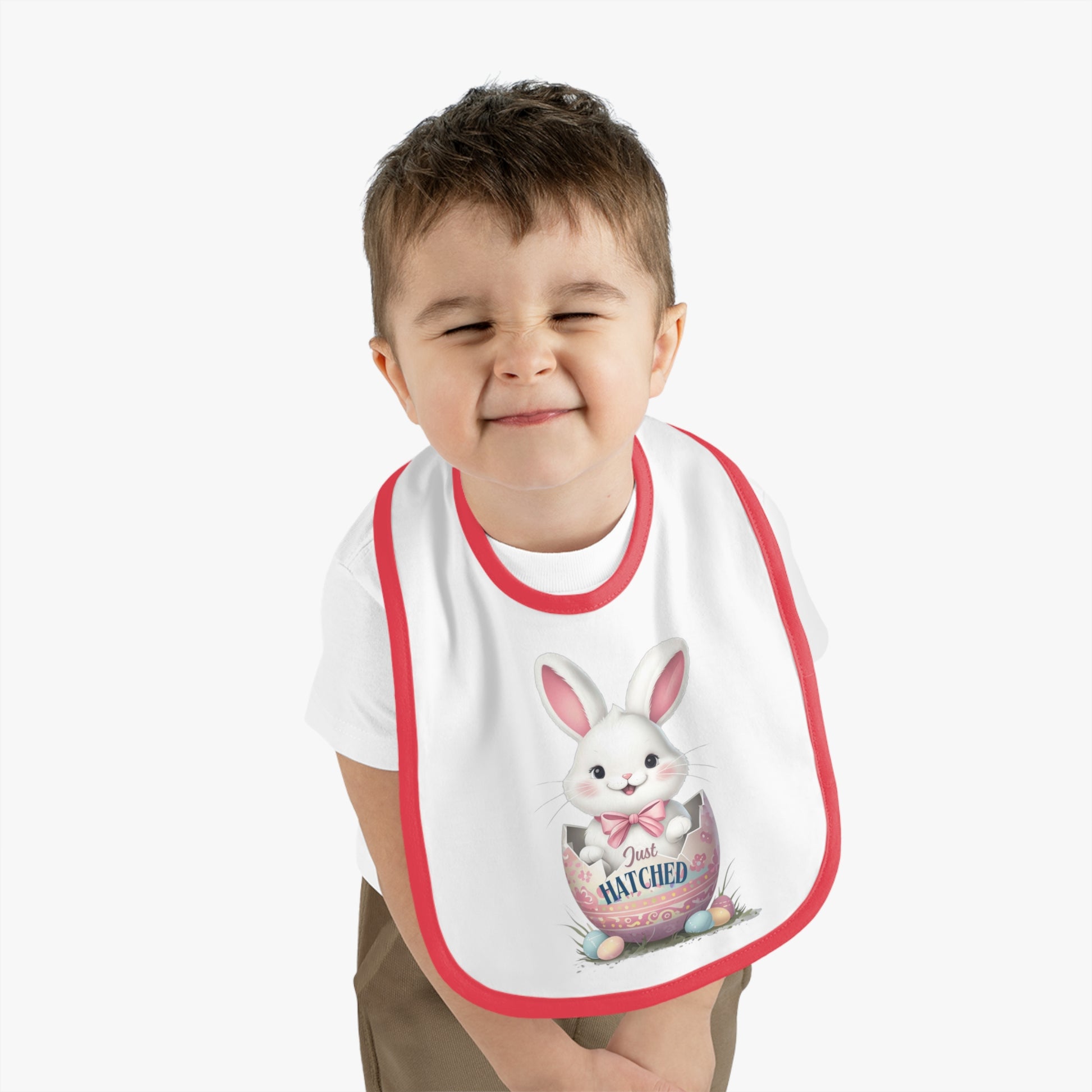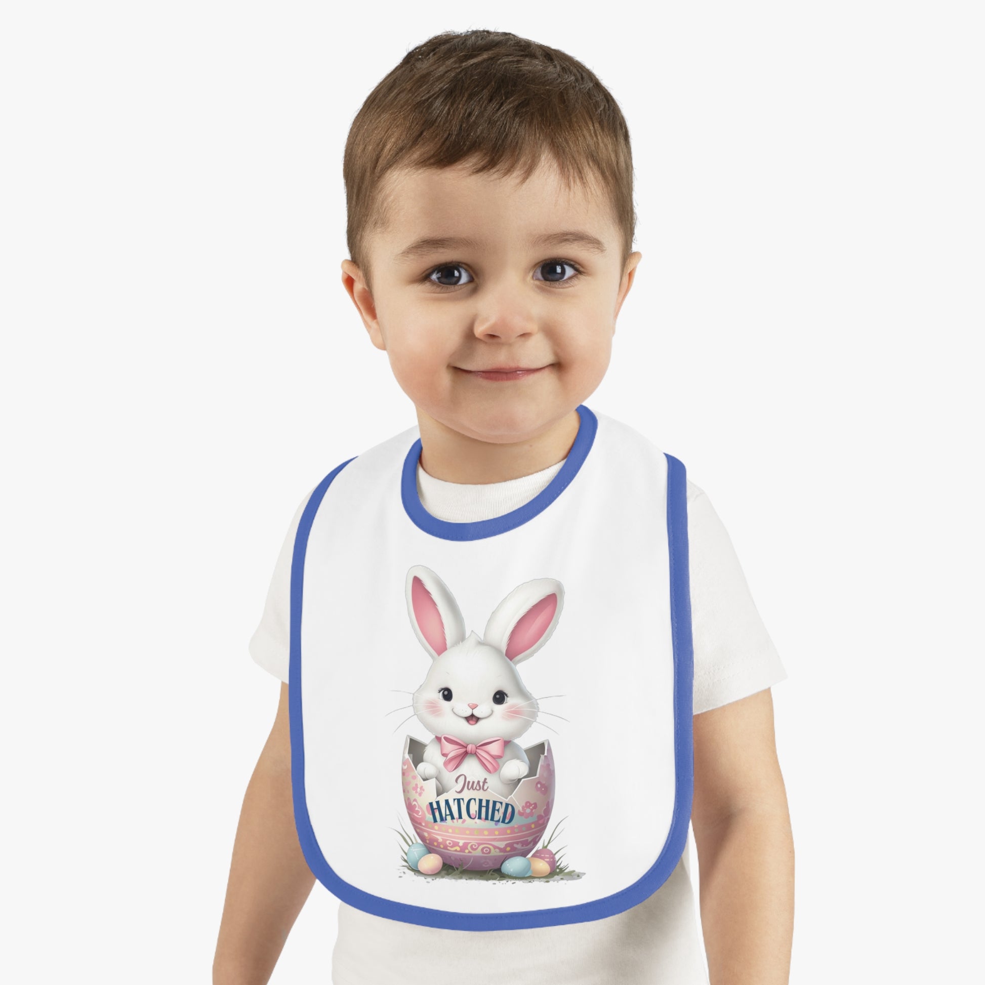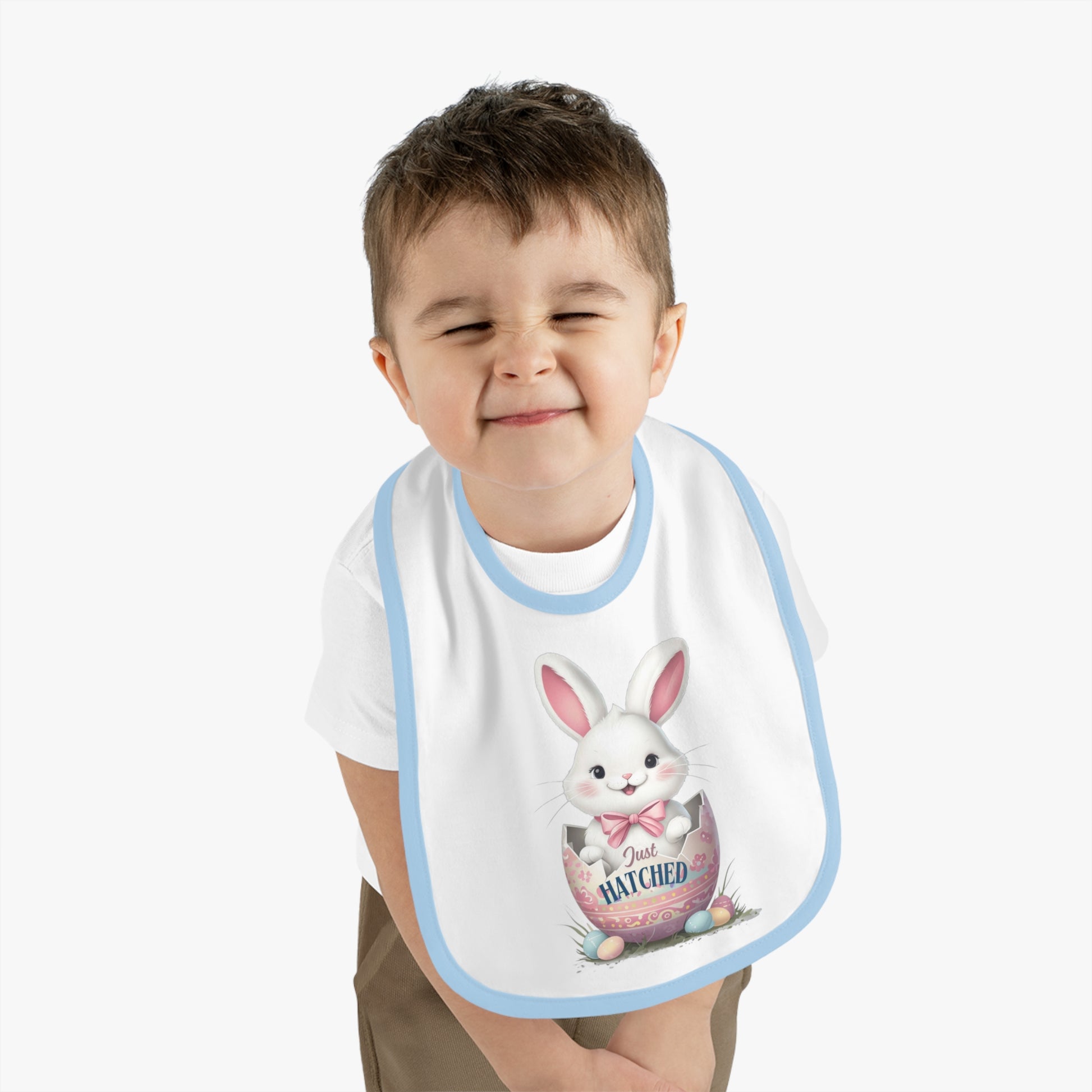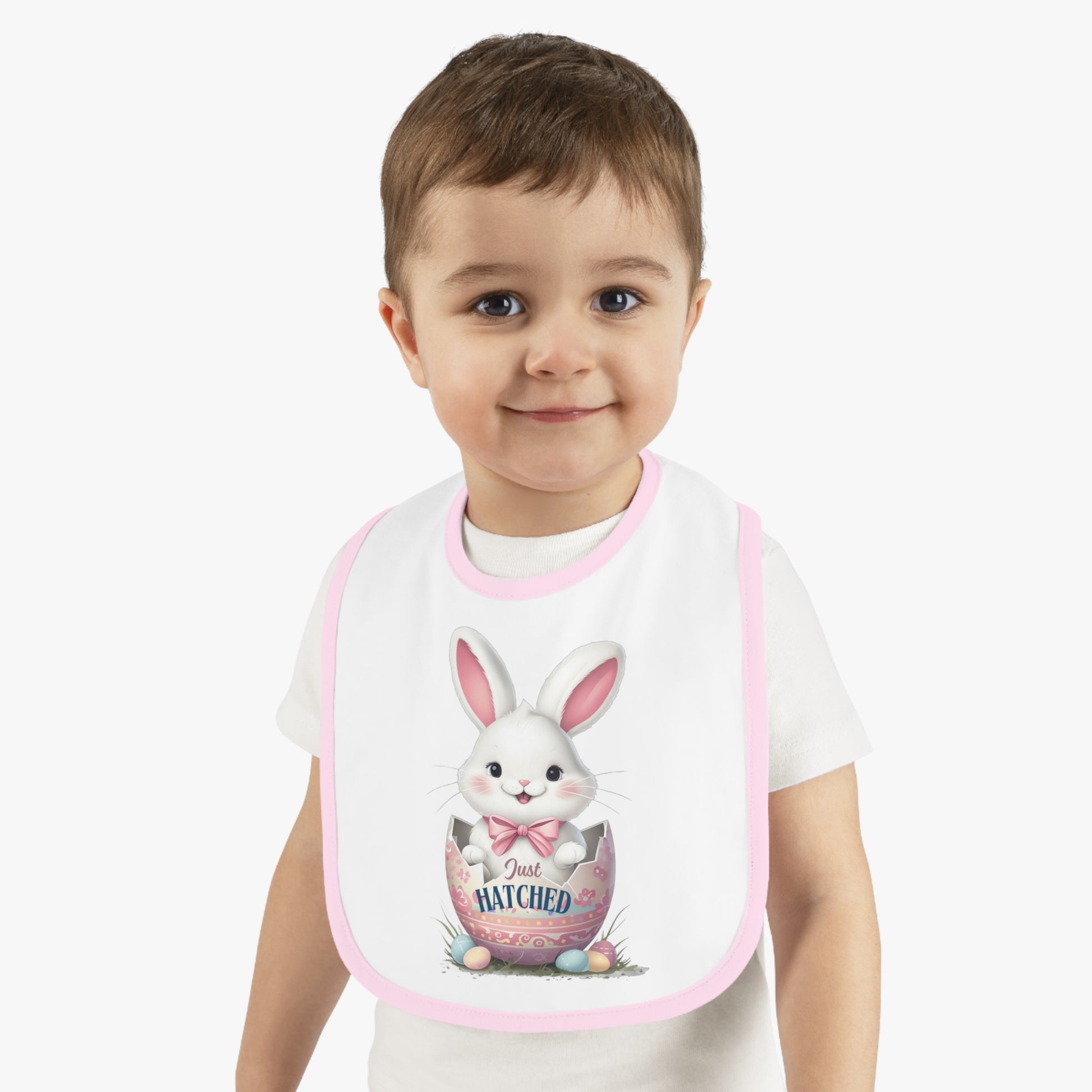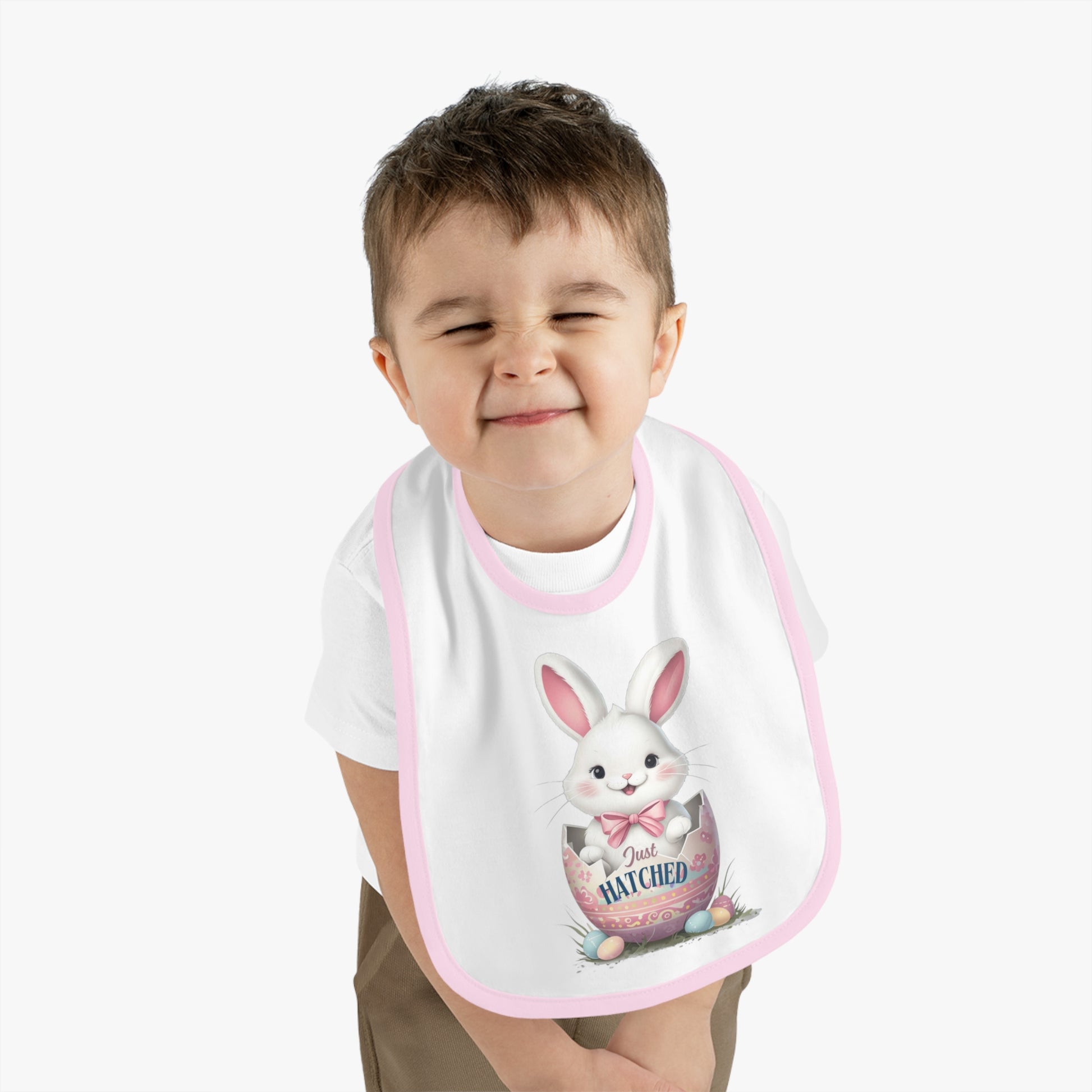 Just Hatched Easter Bunny Bib - Adorable Baby Contrast Trim Jersey Bib for Spring Celebrations