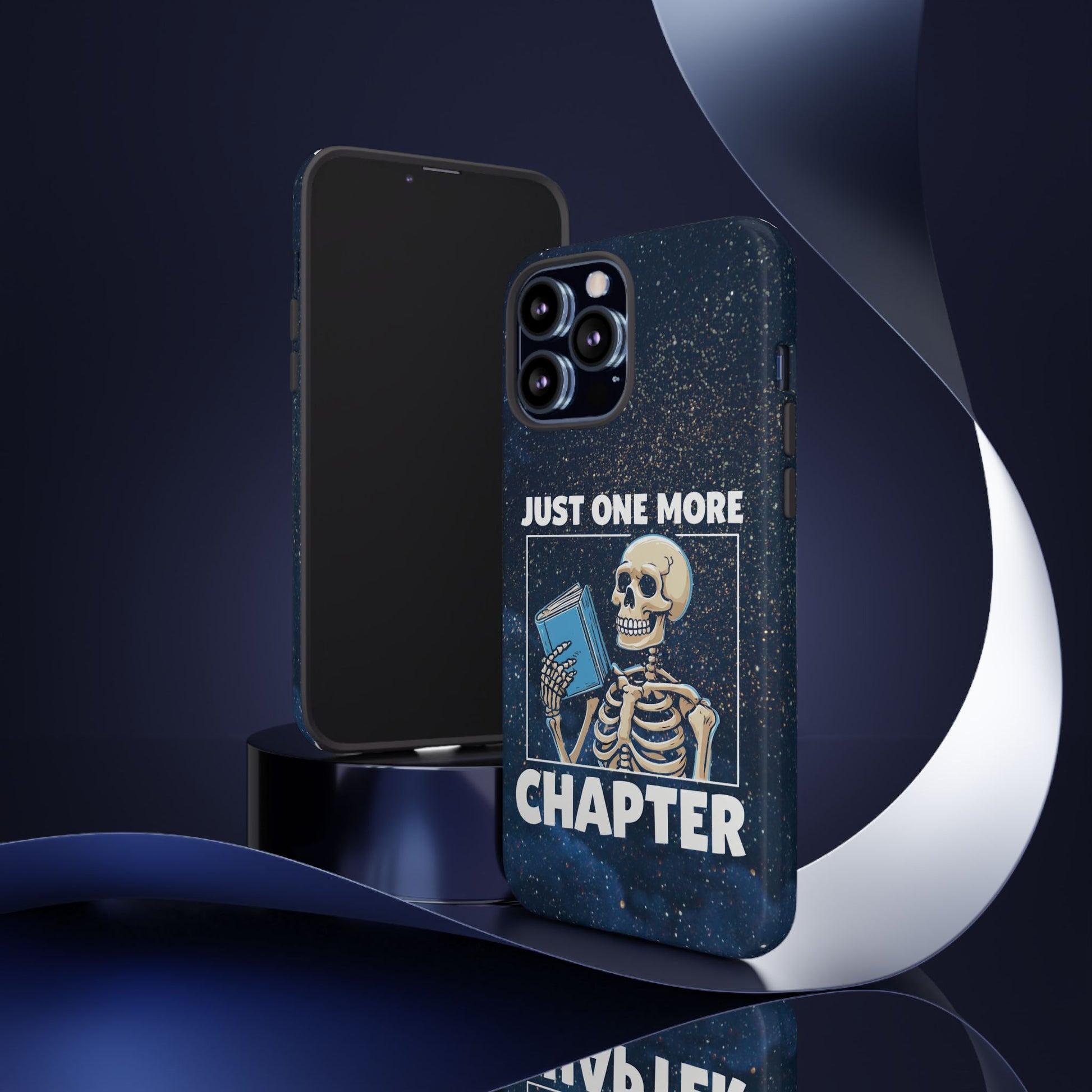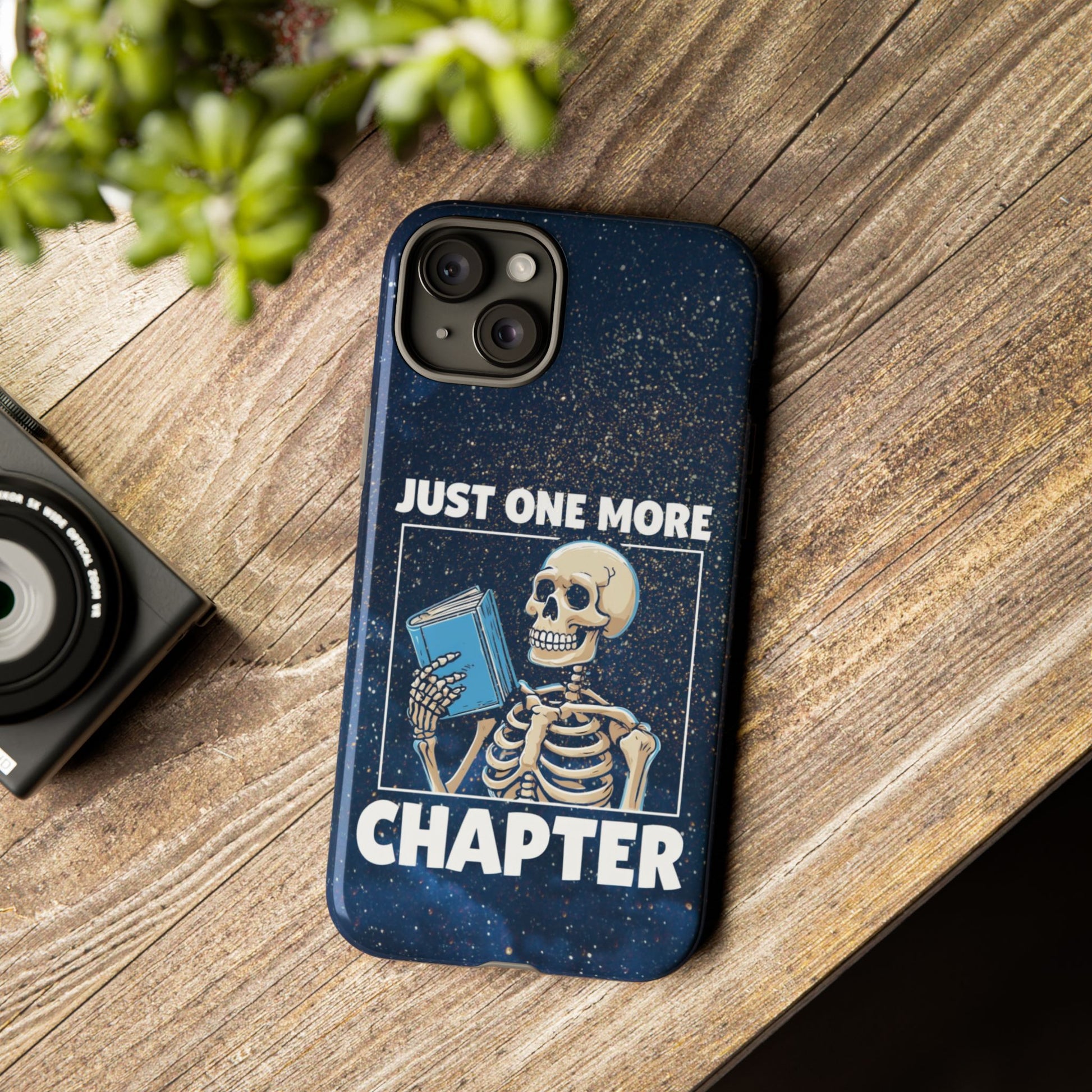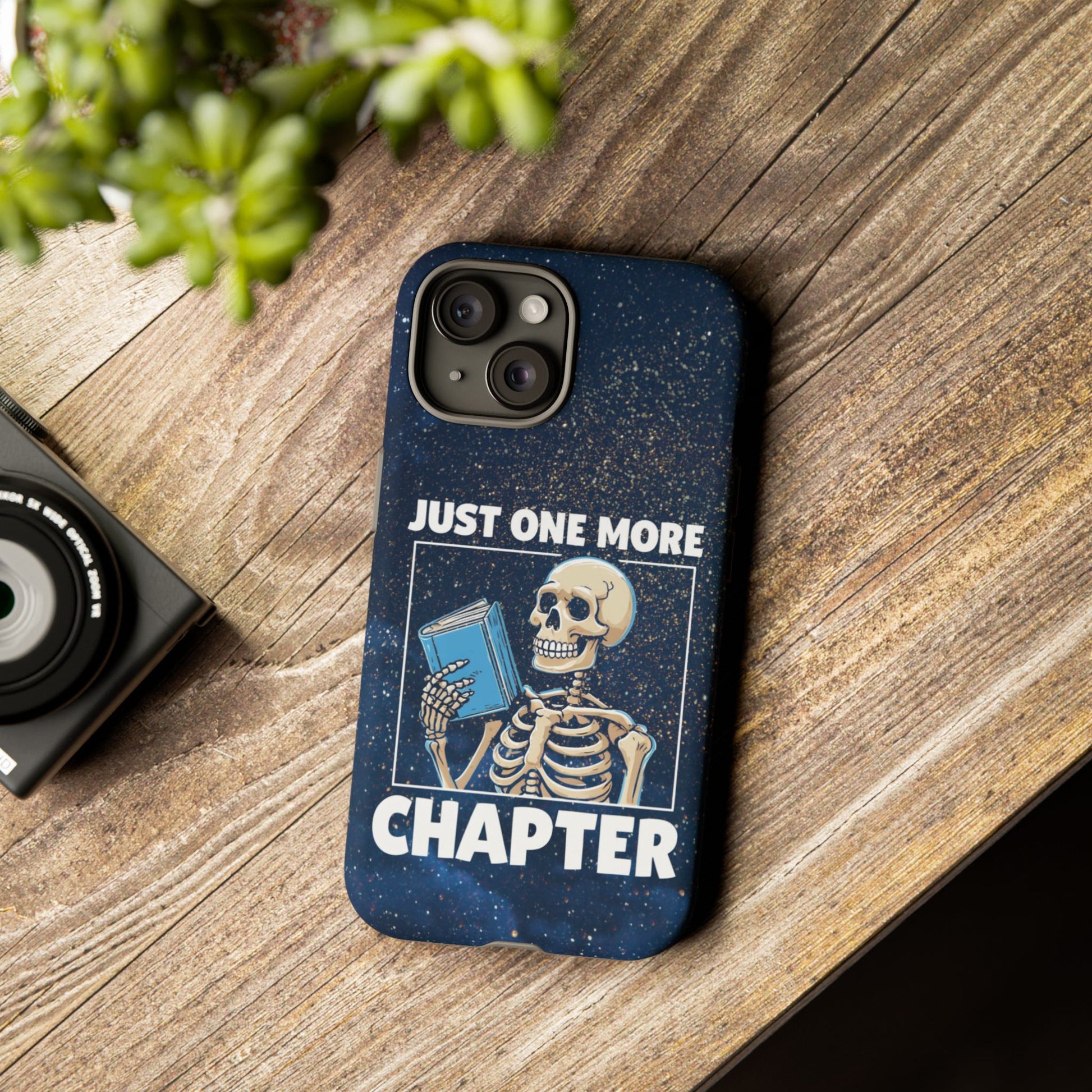 "Just One More Chapter" Skeleton Book Lover Phone Case - Perfect for Bookworms, Readers, Halloween, Gift for Her, Just One More Chapter