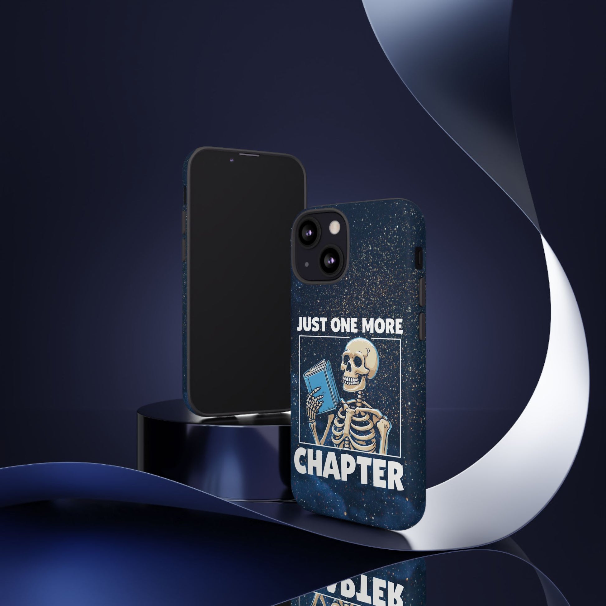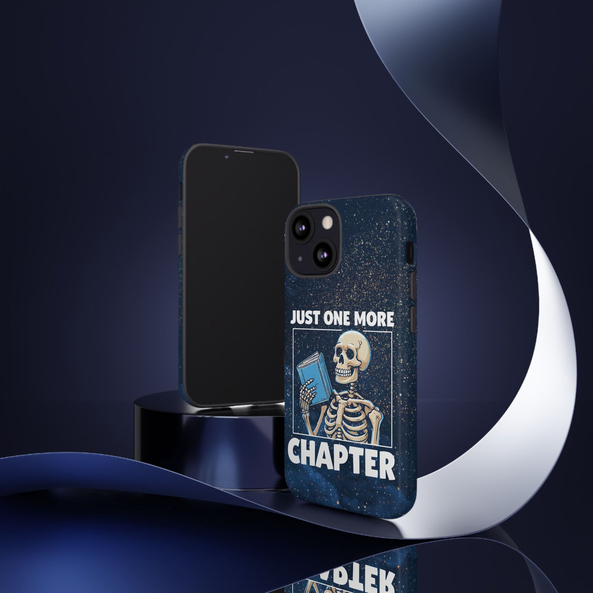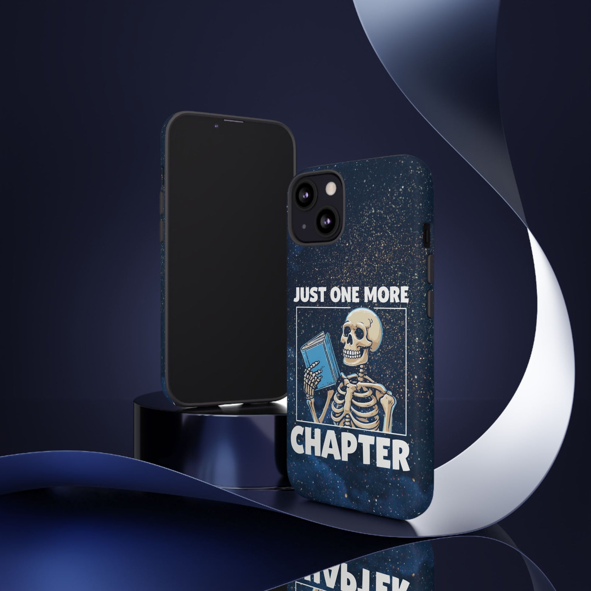 "Just One More Chapter" Skeleton Book Lover Phone Case - Perfect for Bookworms, Readers, Halloween, Gift for Her, Just One More Chapter