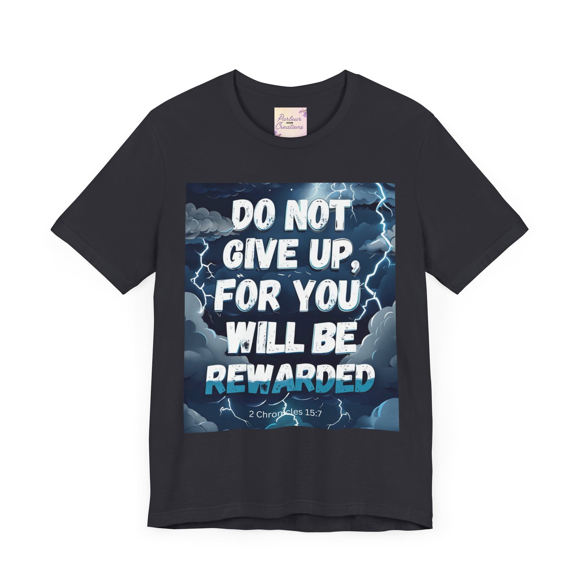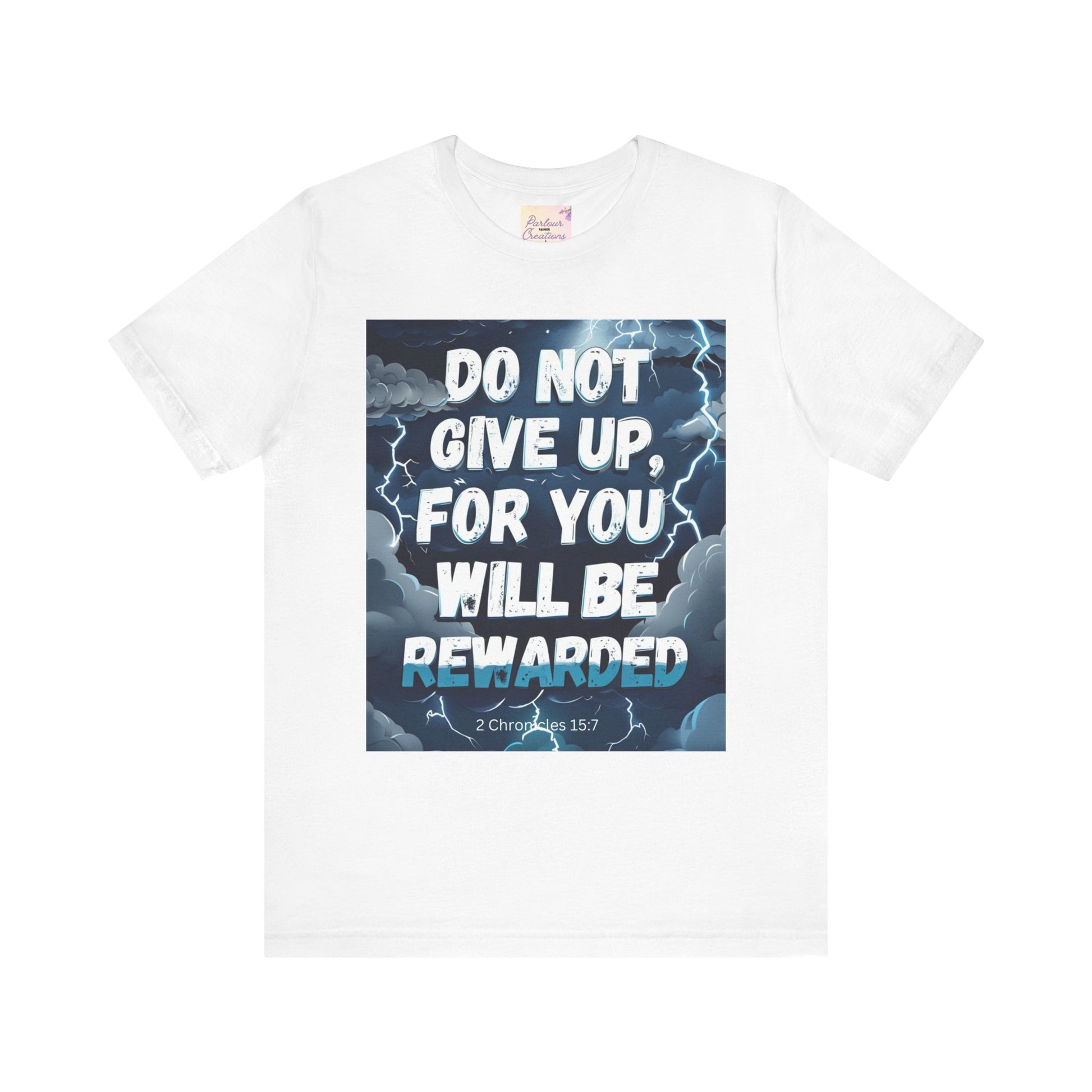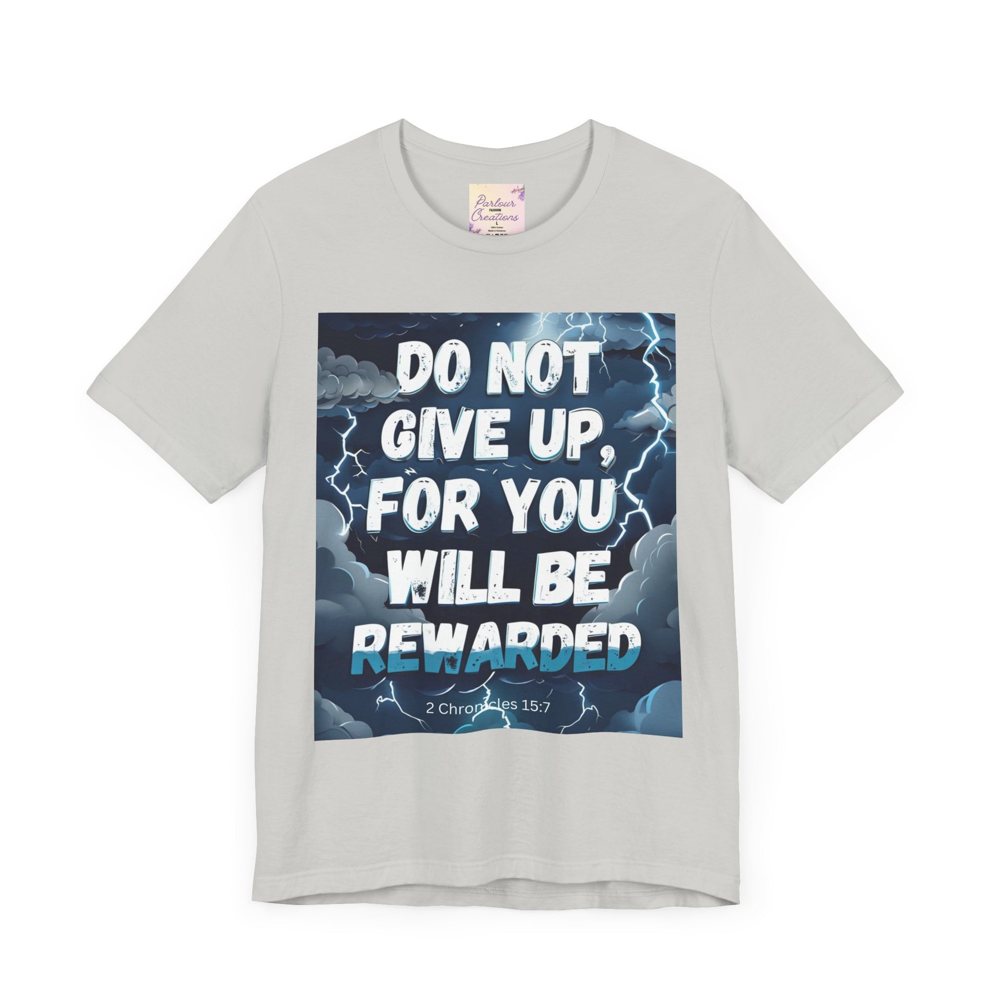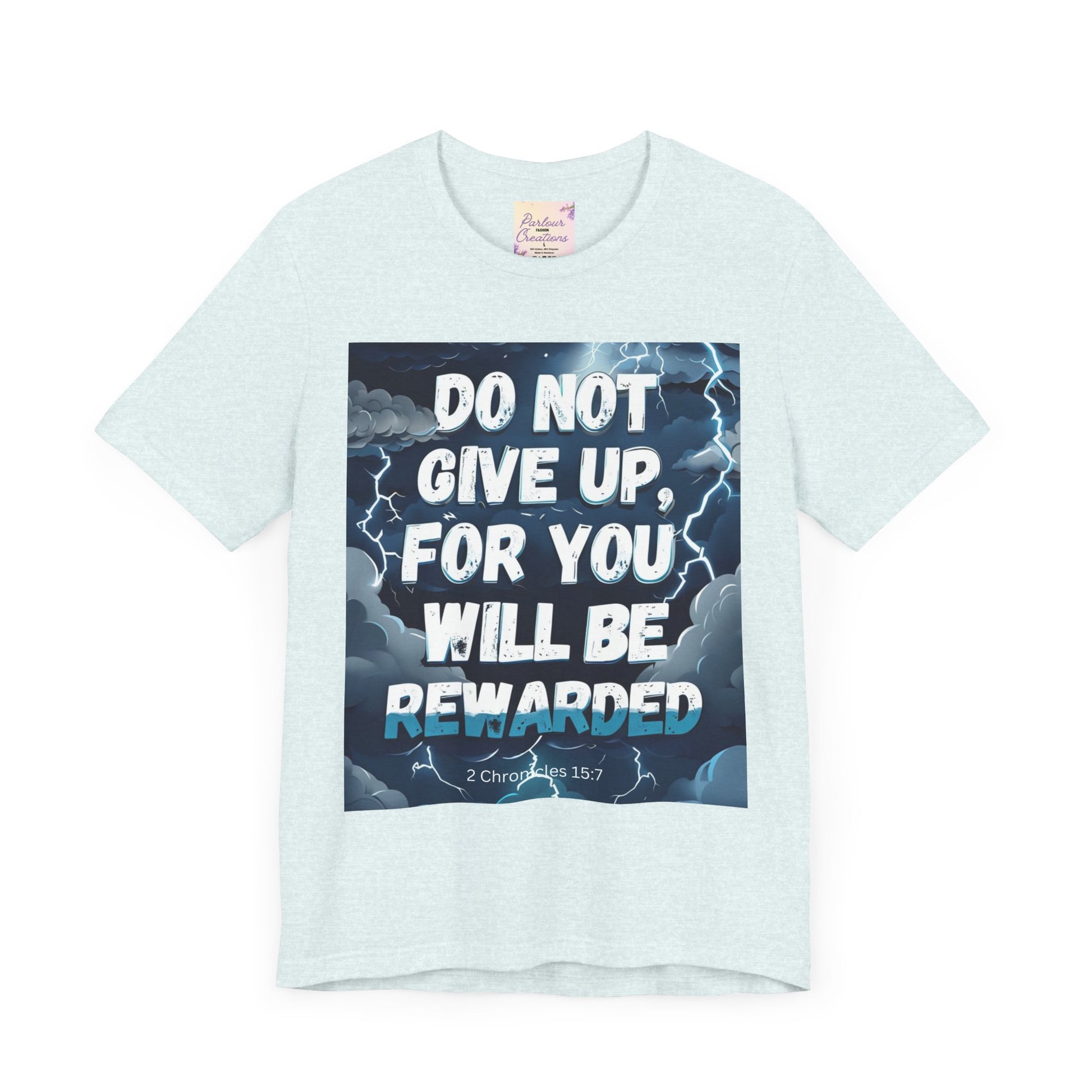 An inspirational unisex T-Shirt featuring the message 'Do not Give Up' in a storm design. This tee is perfect for those seeking motivation and faith. It is a great gift for both men and women, ideal for casual wear or for layering in various settings. Relevant for holidays, celebrations, and occasions that require a message of hope.