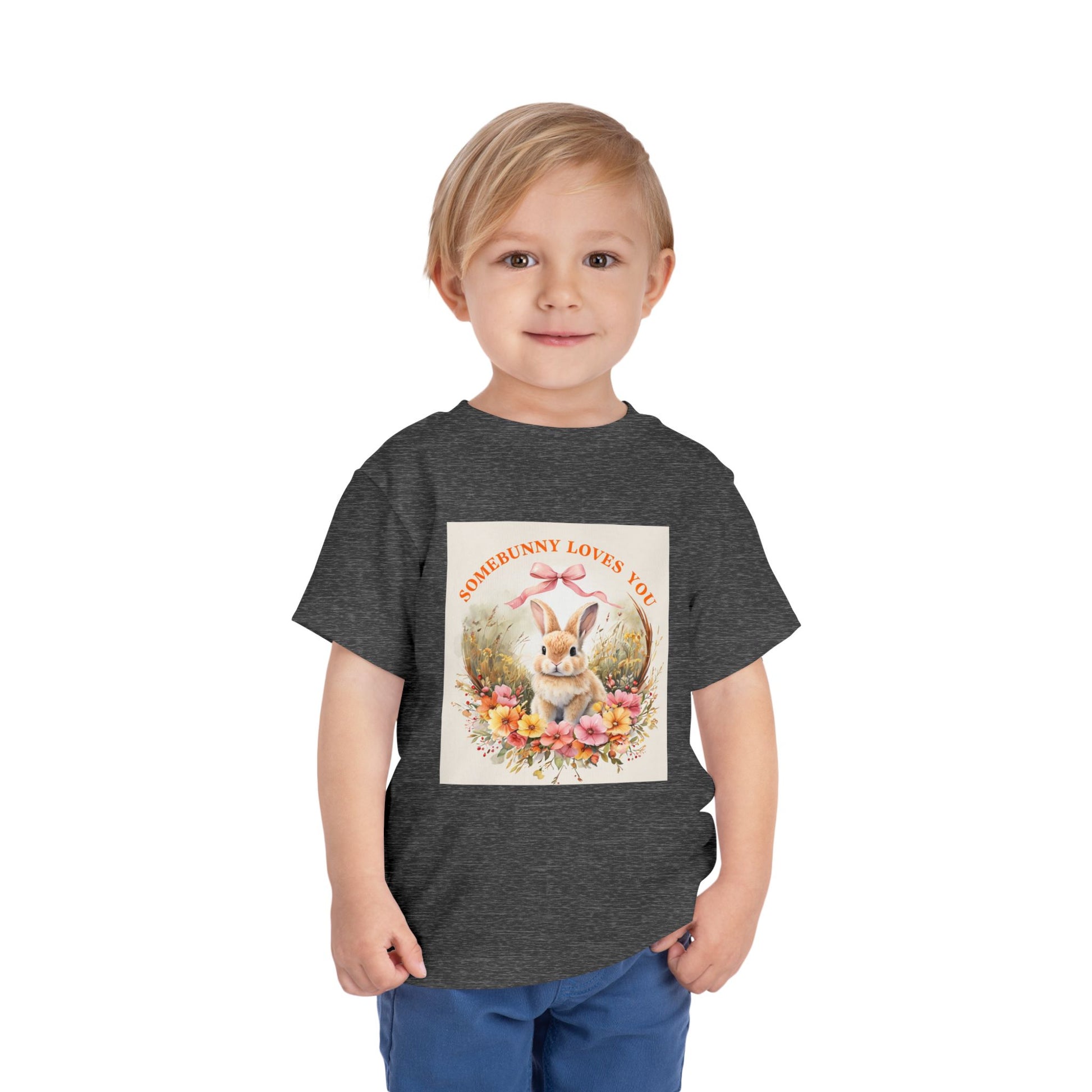 Toddler Short Sleeve Tee - 'Somebunny Loves You' Cute Bunny Design for Easter & Spring Celebrations
