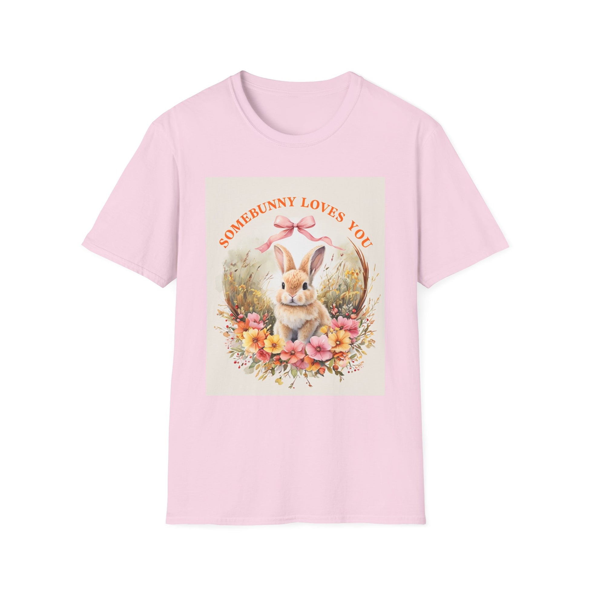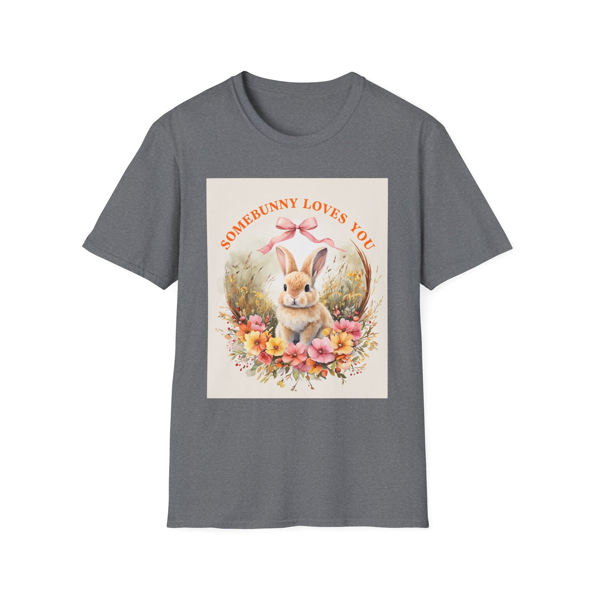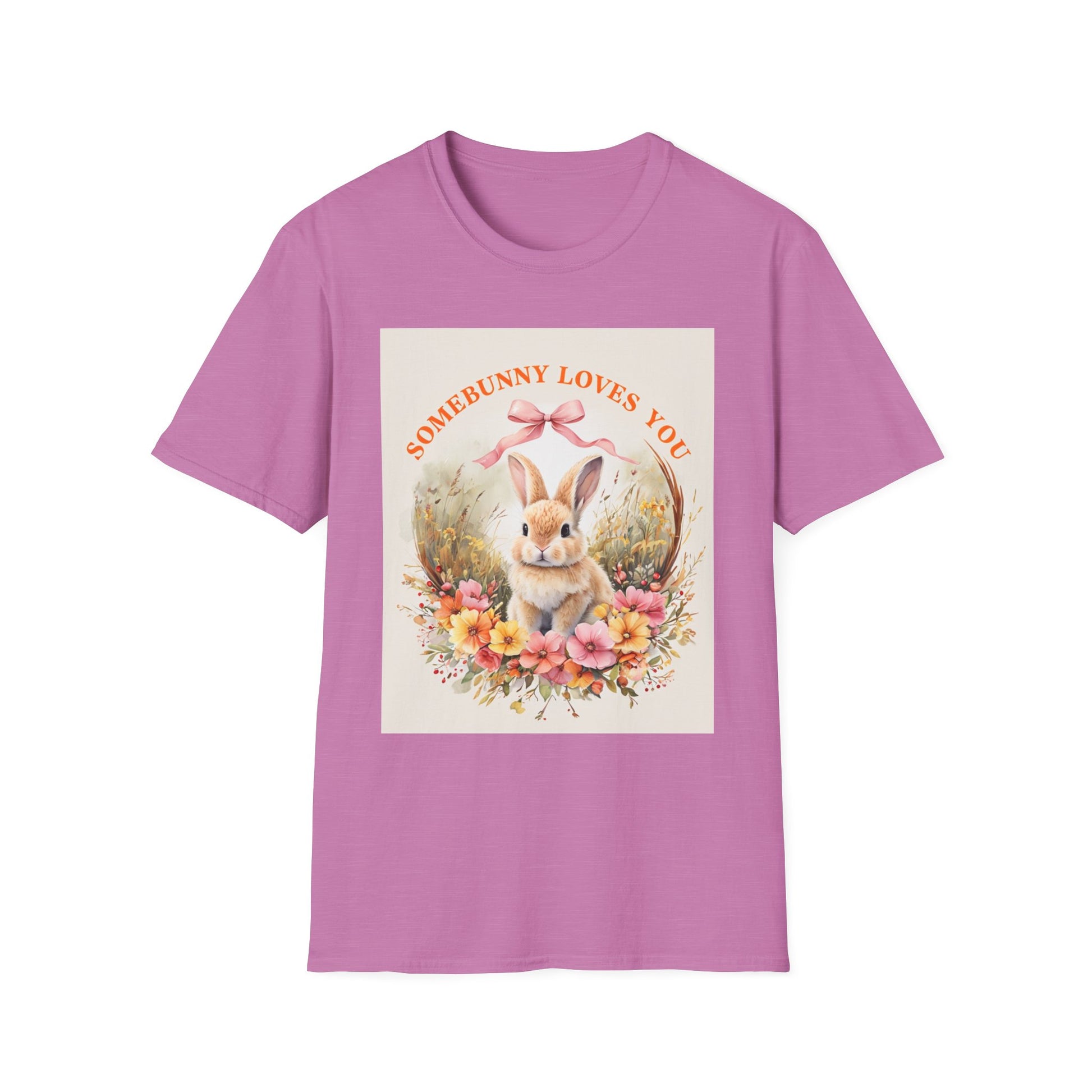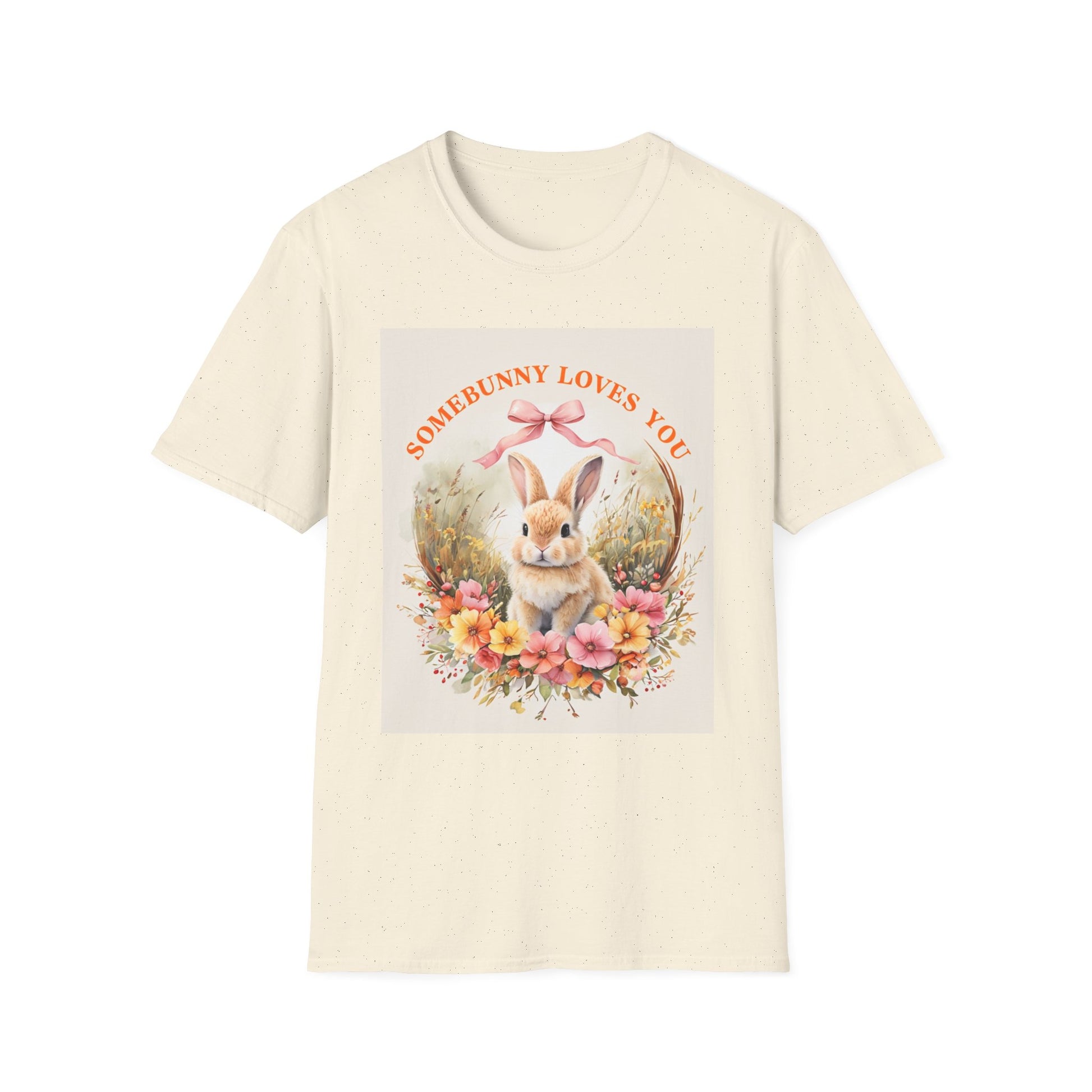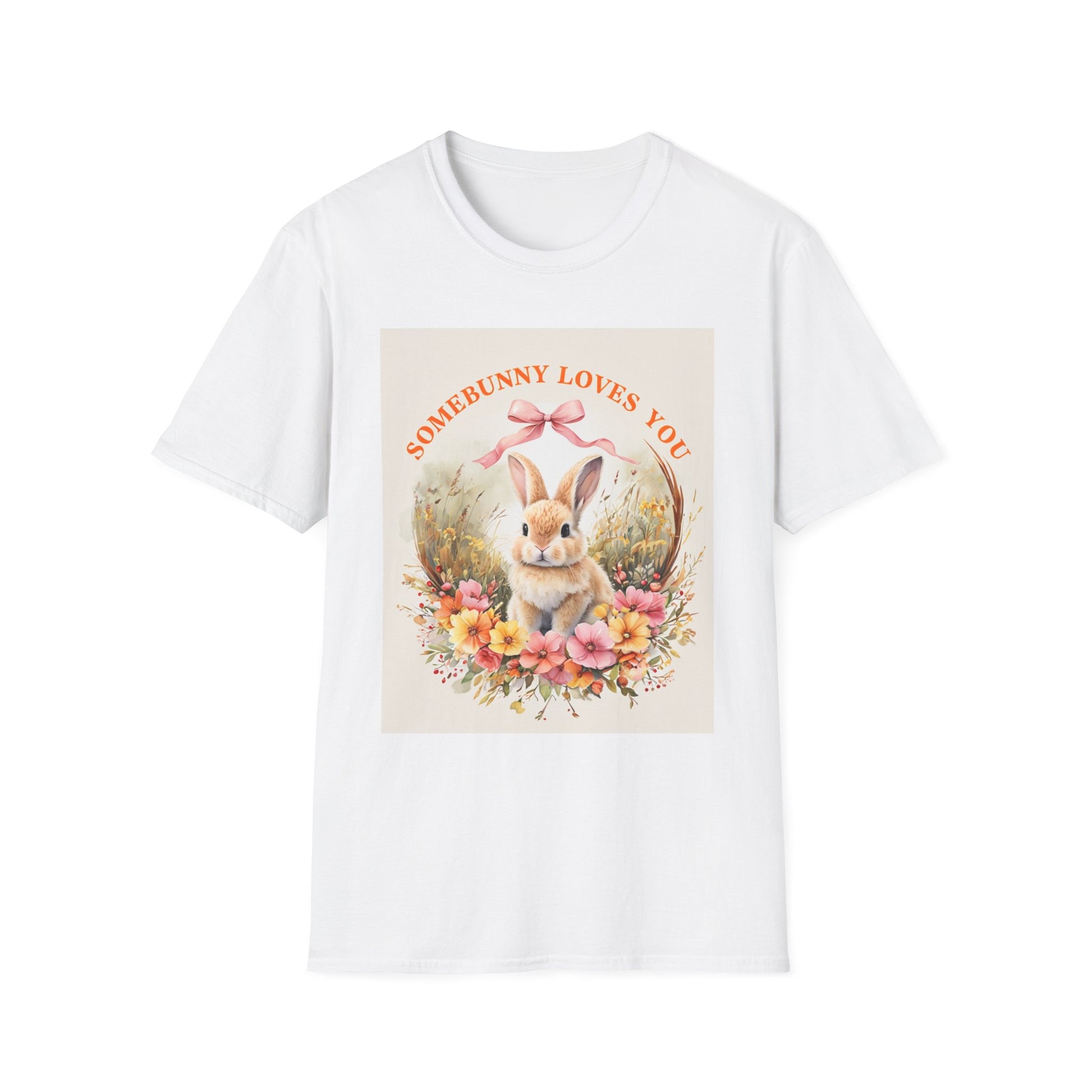 Unisex Softstyle T-Shirt - 'Somebunny Loves You' Floral Bunny Design for Easter