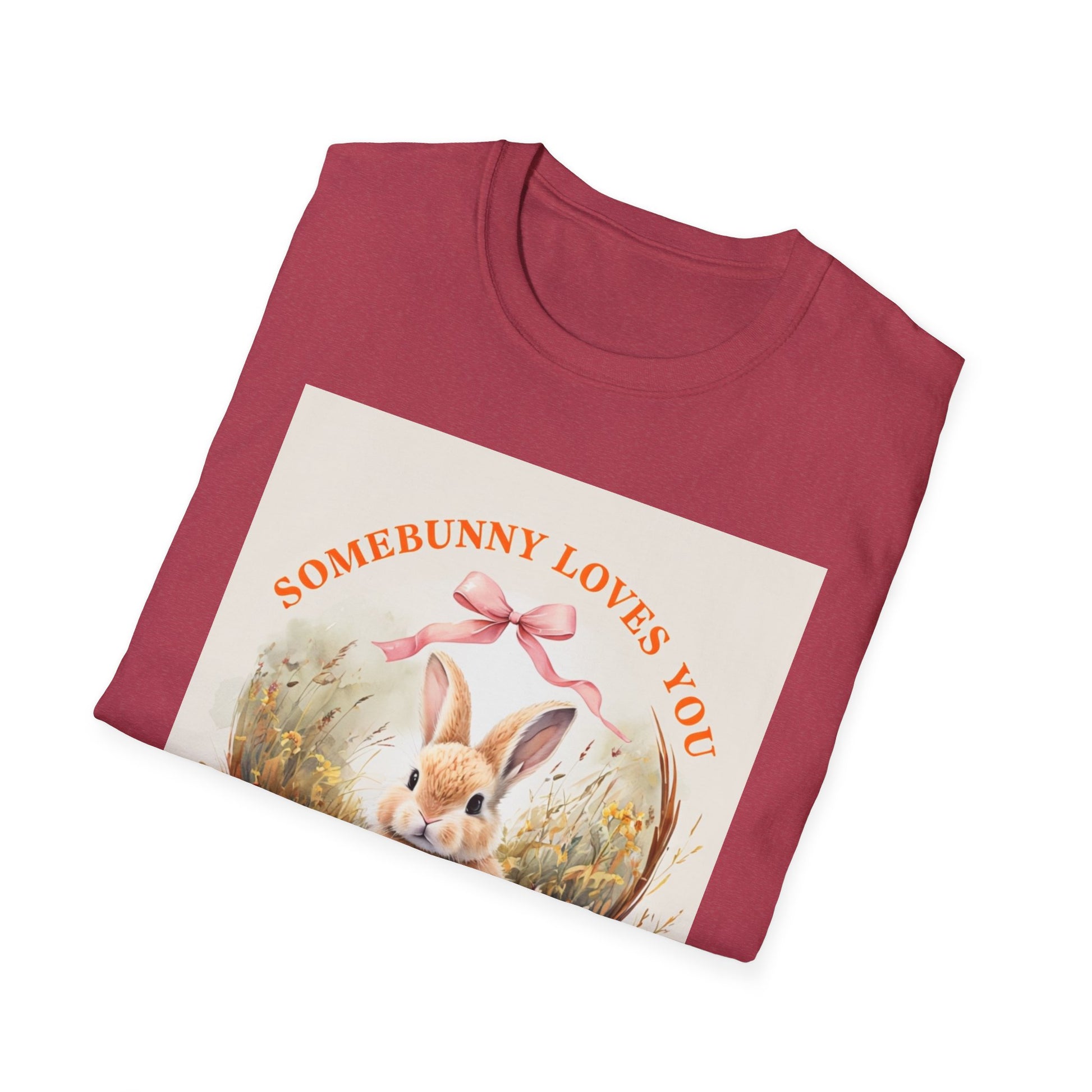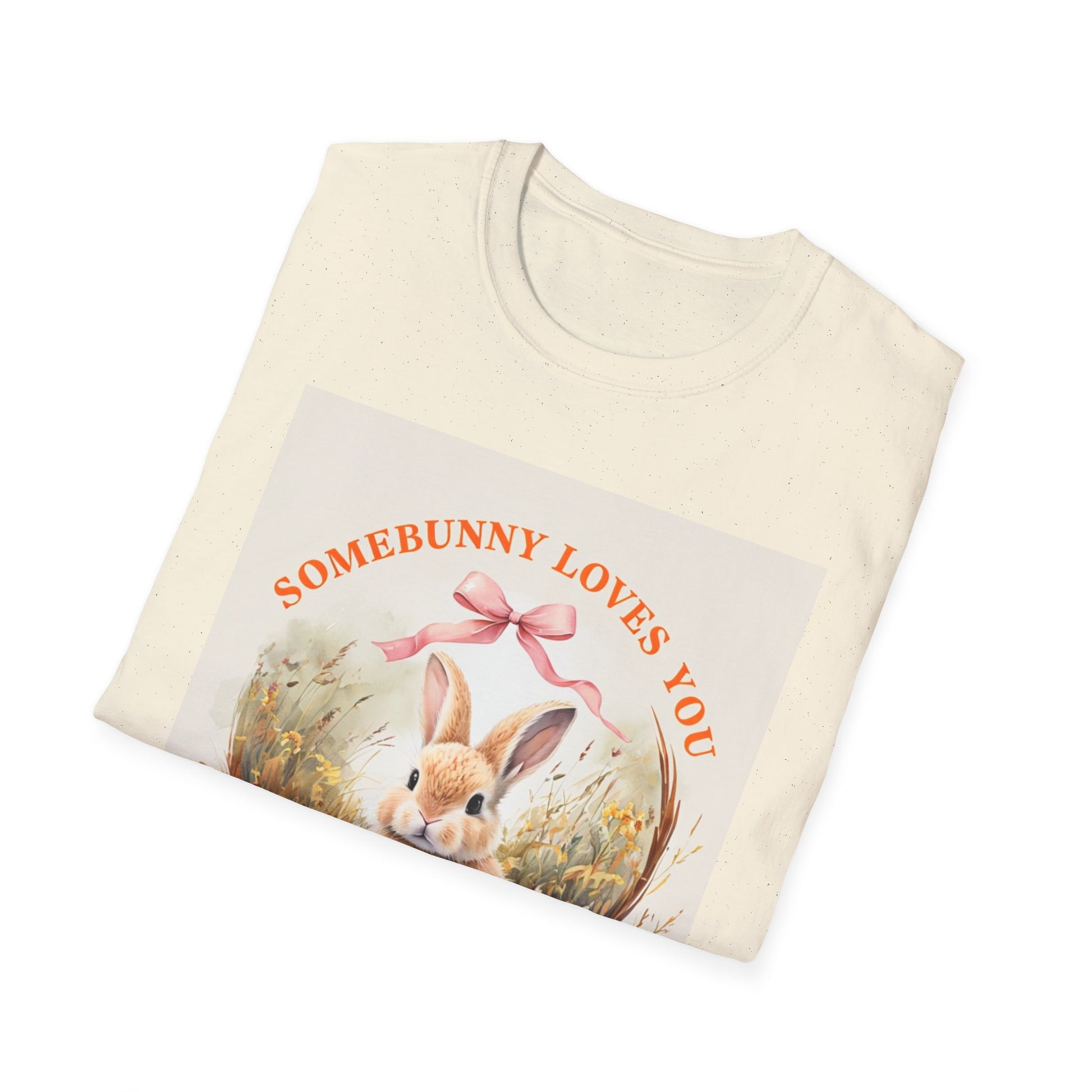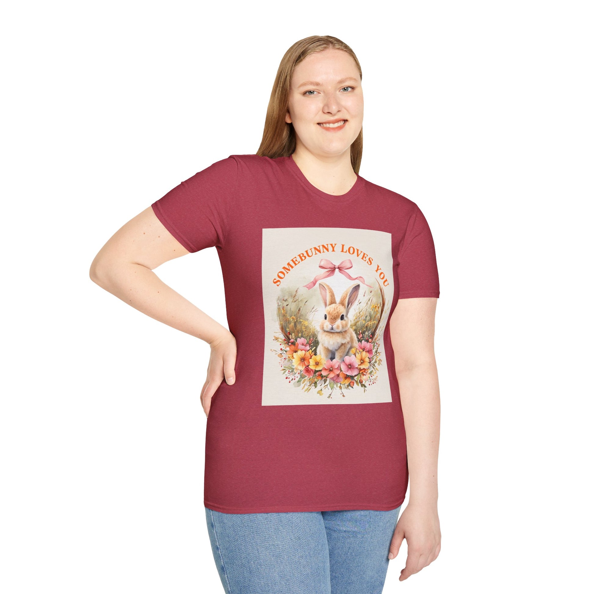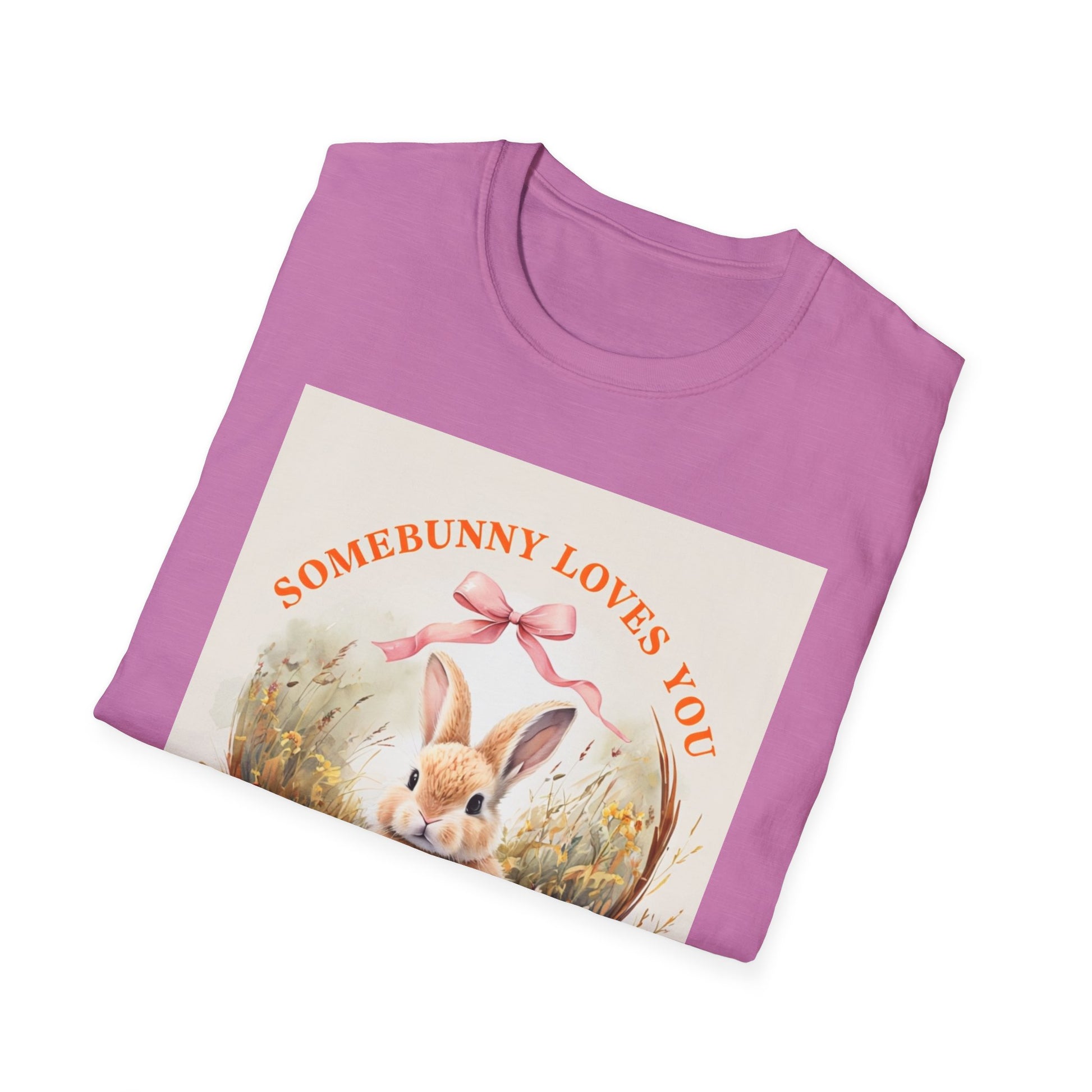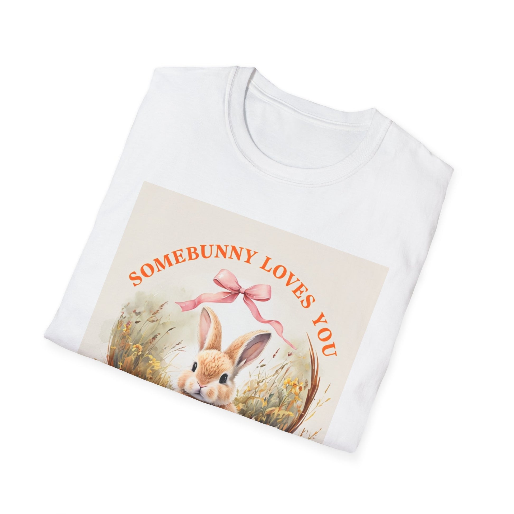 Unisex Softstyle T-Shirt - 'Somebunny Loves You' Floral Bunny Design for Easter
