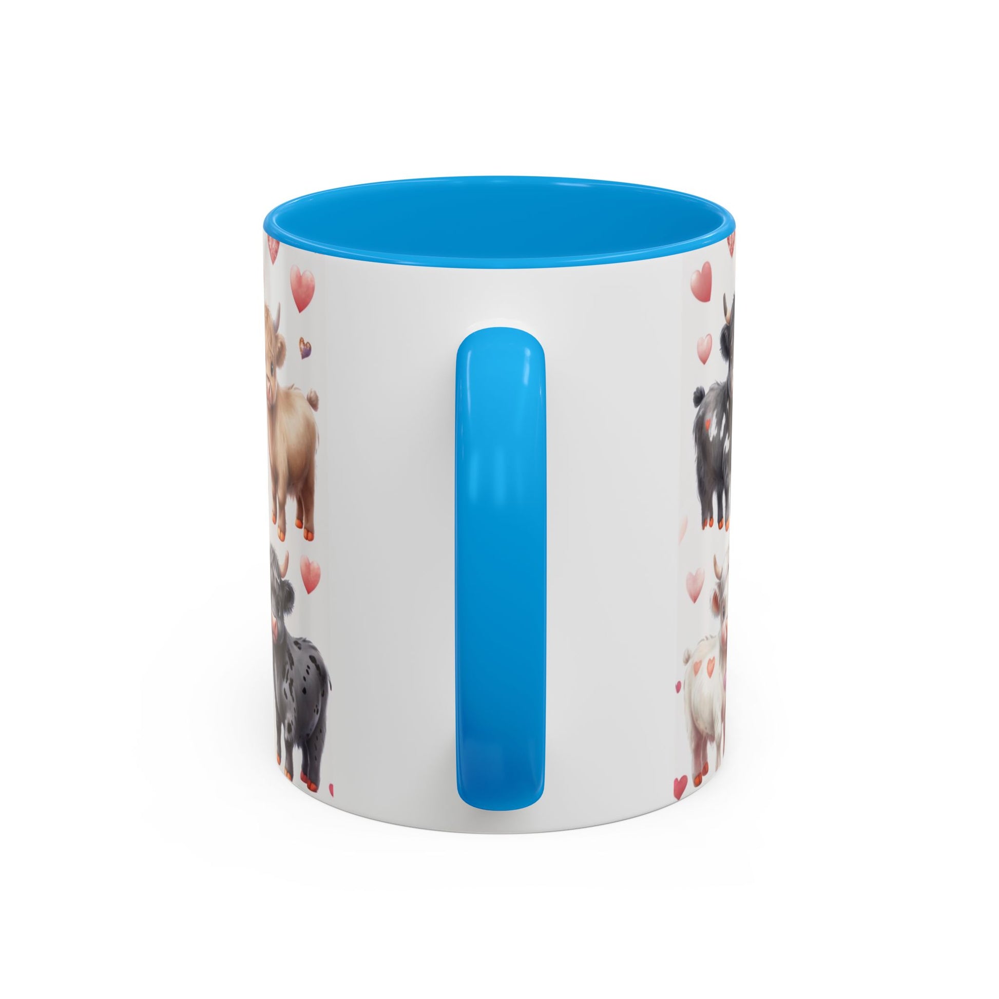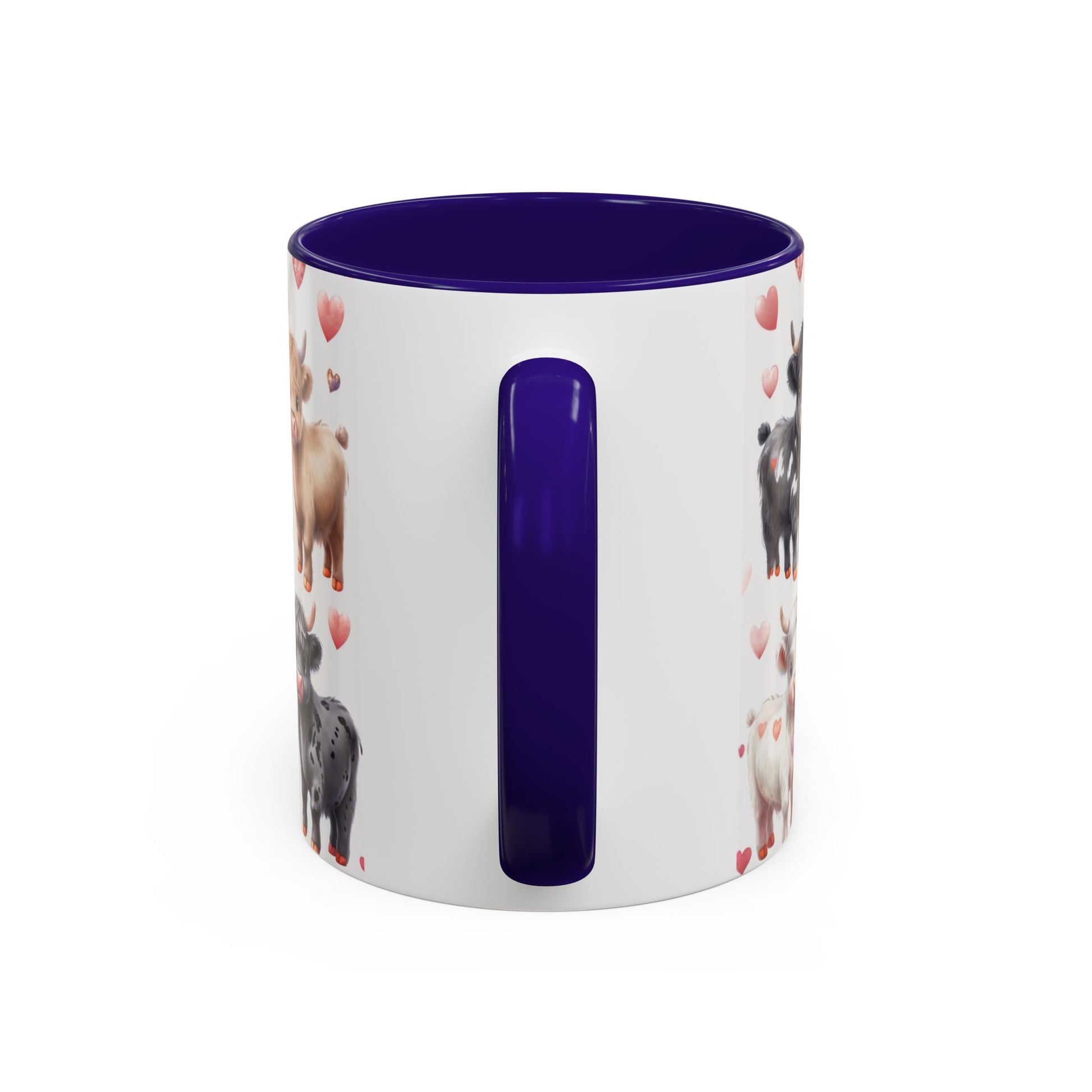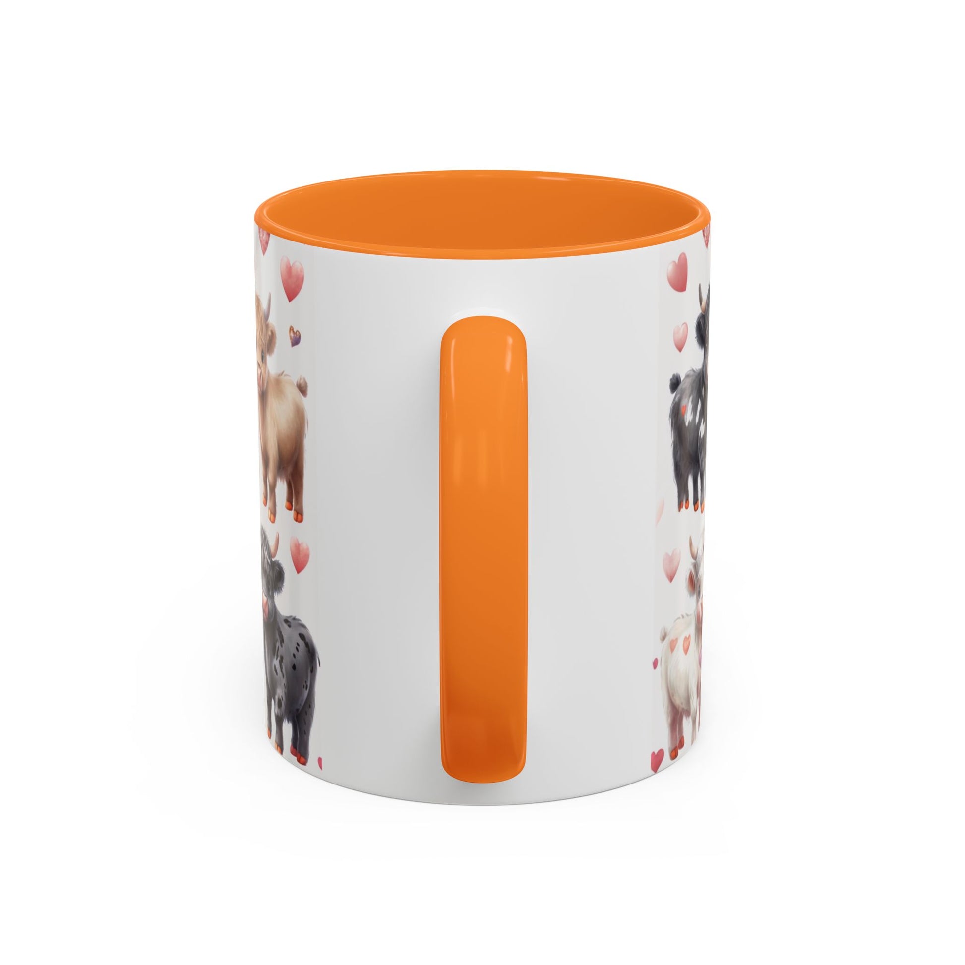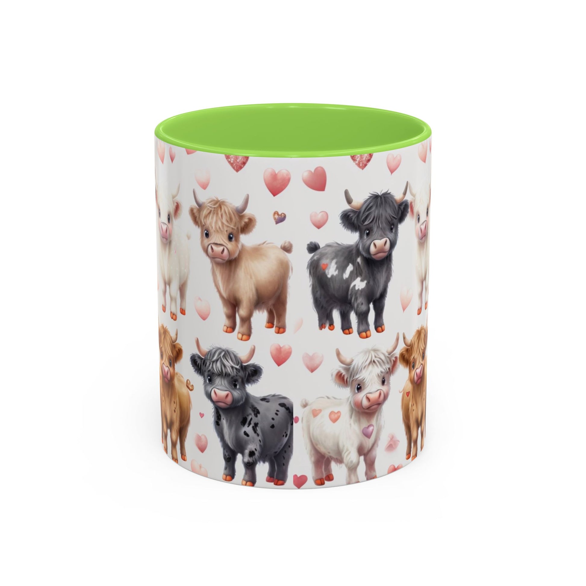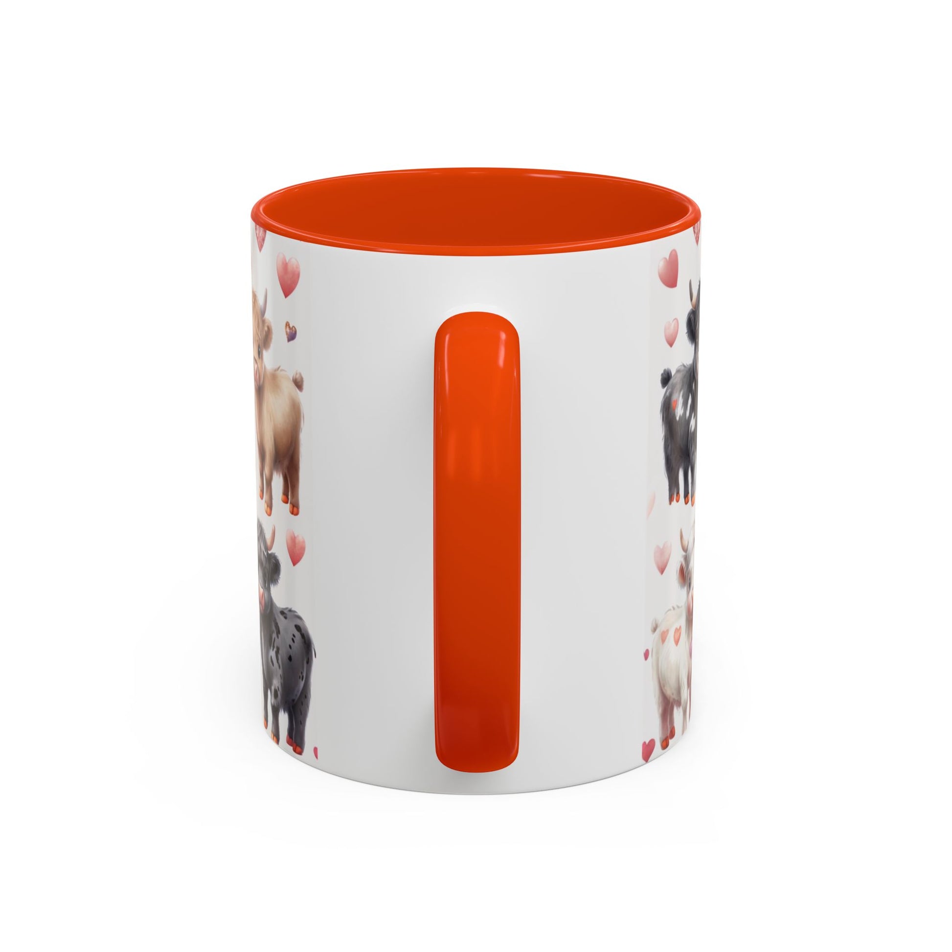 Add a delightful touch of farmhouse charm to your morning routine with this charming mini highland cow valentine-themed ceramic mug. Featuring an array of beautifully illustrated cows in various colors, scattered among adorable heart motifs on a pristine white background. The mug comes with your choice of 12 vibrant accent colors for the handle and interior, adding a personalized pop to your daily brew. Available in two generous sizes - 11 oz for your standard cup of coffee for those mornings when you need an extra boost. The glossy ceramic construction feels substantial in your hands, while the ergonomic C-shaped handle ensures a comfortable grip. The high-fidelity artwork maintains its crisp detail and vivid colors through countless dishwasher cycles, making this mug both practical and decorative. Perfect for chicken enthusiasts, farm lovers, or anyone who appreciates whimsical kitchen accessories that bring a smile to their face.