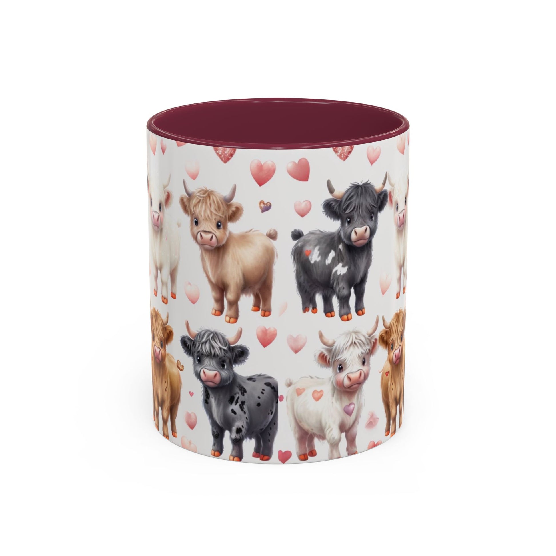 Valentines Mini Highland Cow Cermaic 11oz Color Mug Gift for Her, Him, Them, Child